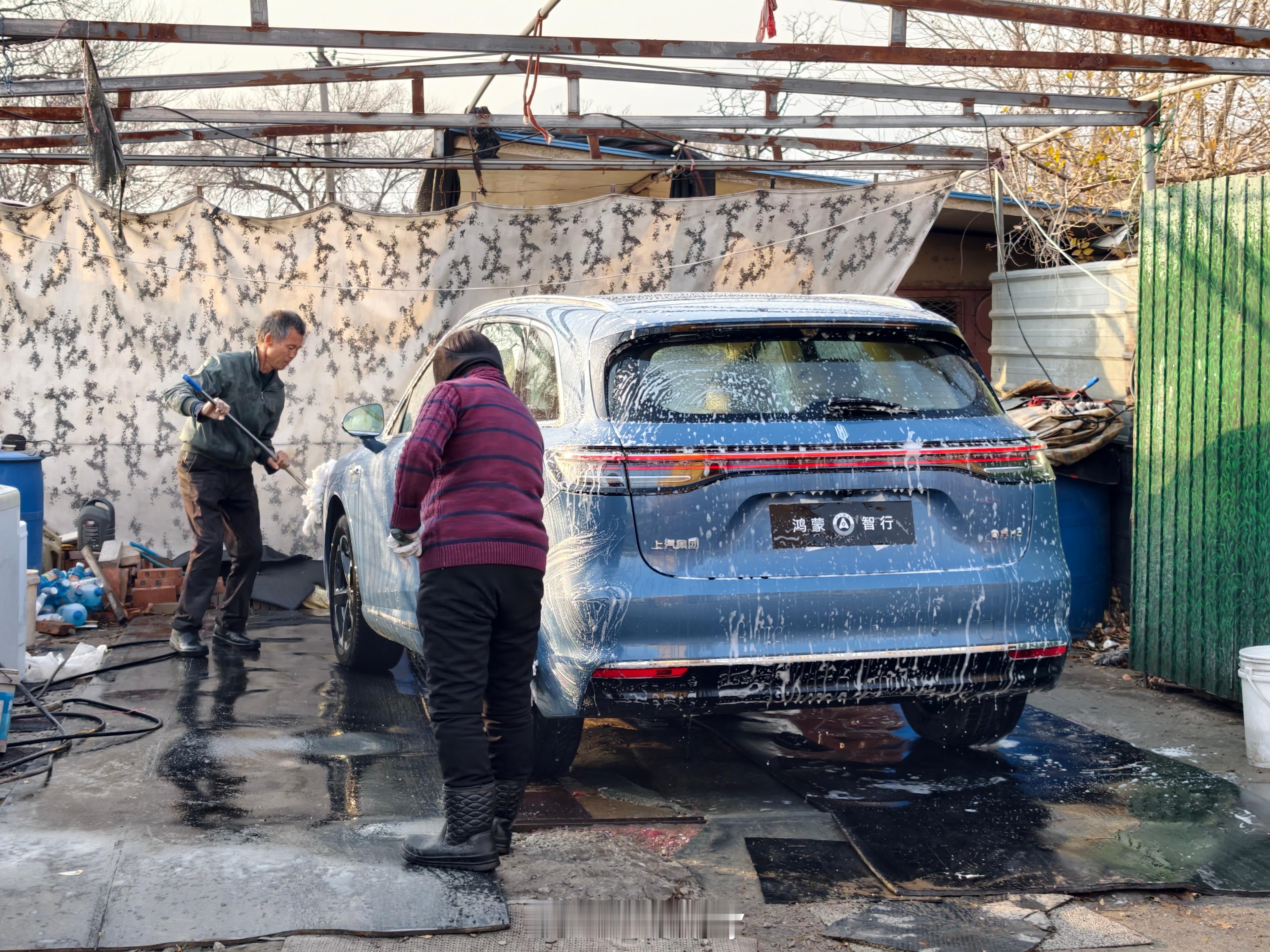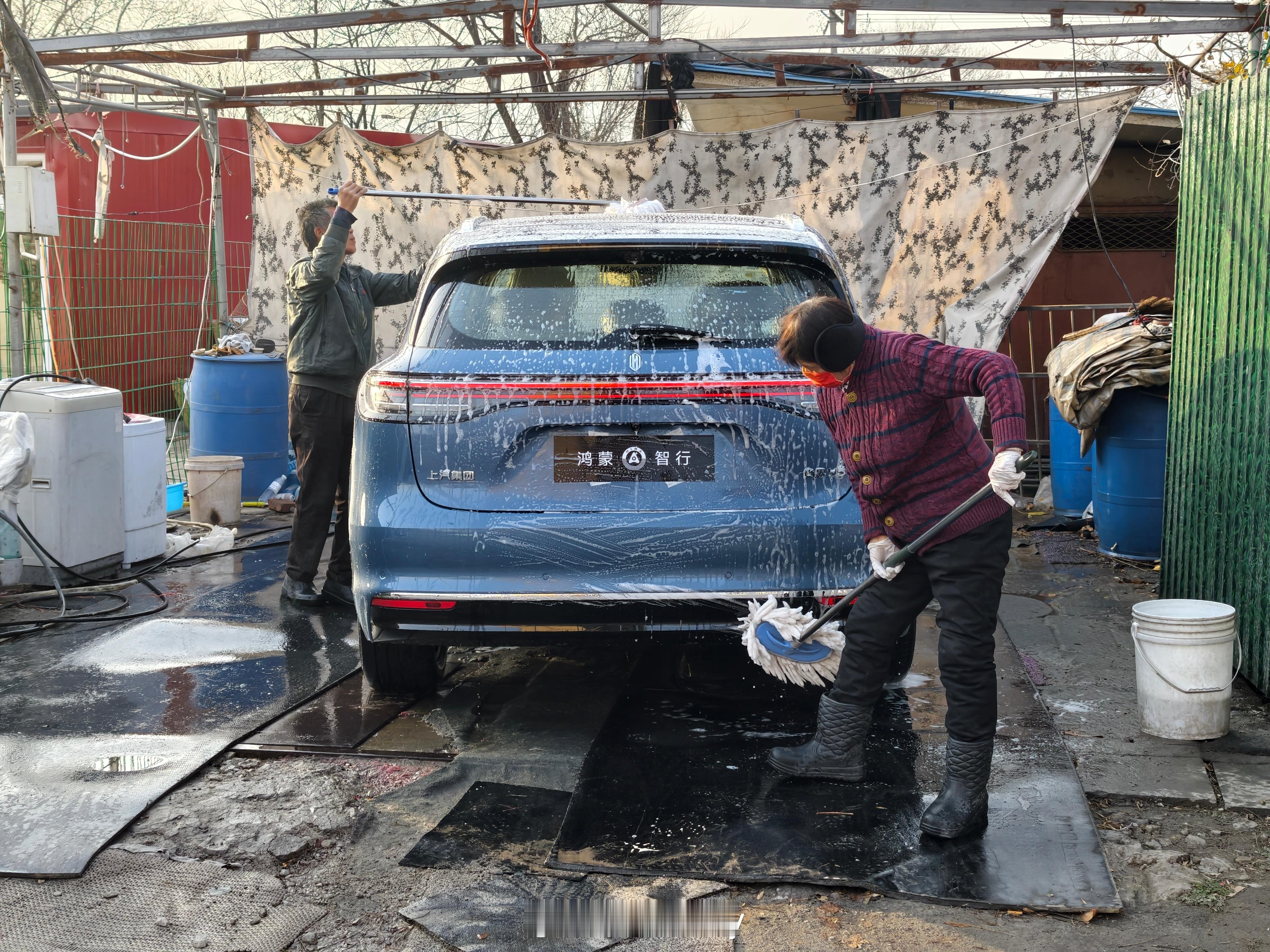 周末来给尚界H5洗个车。路边夫妻小店挺合适的,价格实惠。