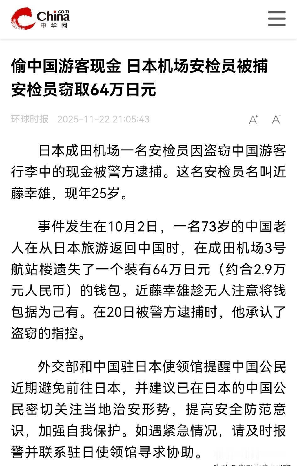 成田机场25岁安检员偷走中国大妈64万日元,羽田机场又一个家伙一个月扒了70多人150万。 这哪是安检,简直是“安检贼”。 机场安检员都敢下手,说明管理真出了大问题。 靠劳务派遣、待遇低、监管松,这锅不该他们背。 别以为这事只在日本发生,背后是制度漏洞和人性弱点的结合。 真要出事,旅客自己也得长点心眼。 现在机场加了摄像头、双人检查,可人心难防。 你说这事儿该怪谁? 制度、人、还是运气? 别光看热闹,出门在外,钱包得比脸还重要。