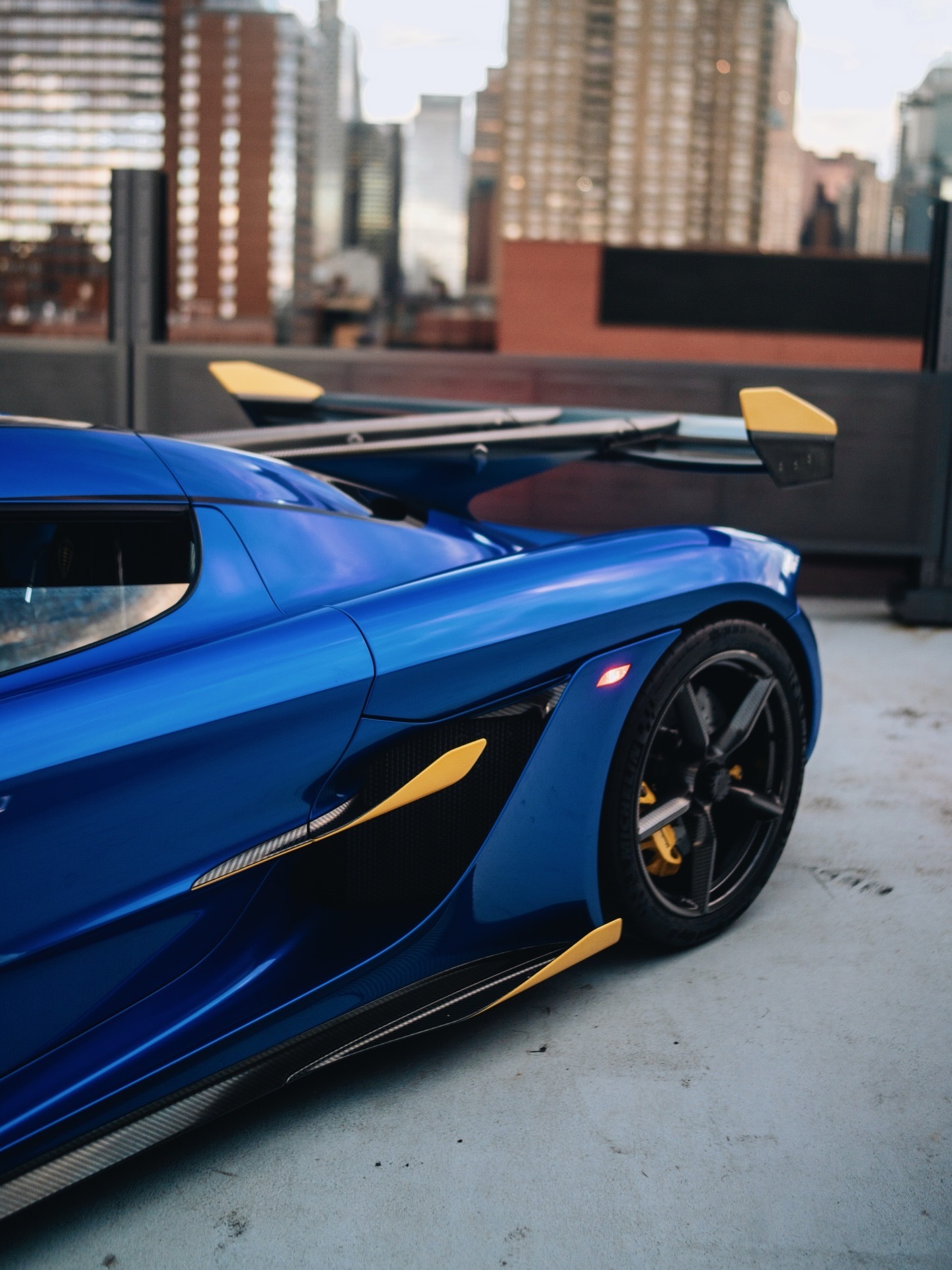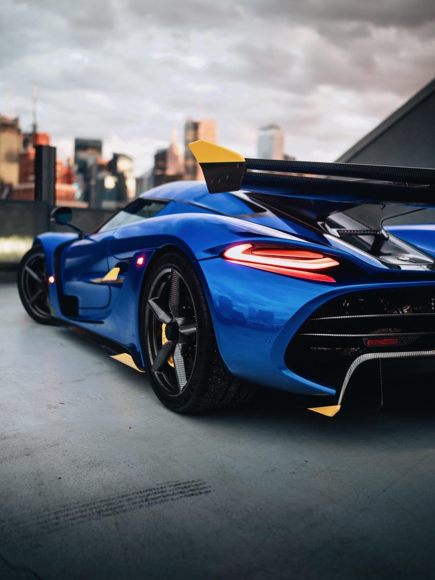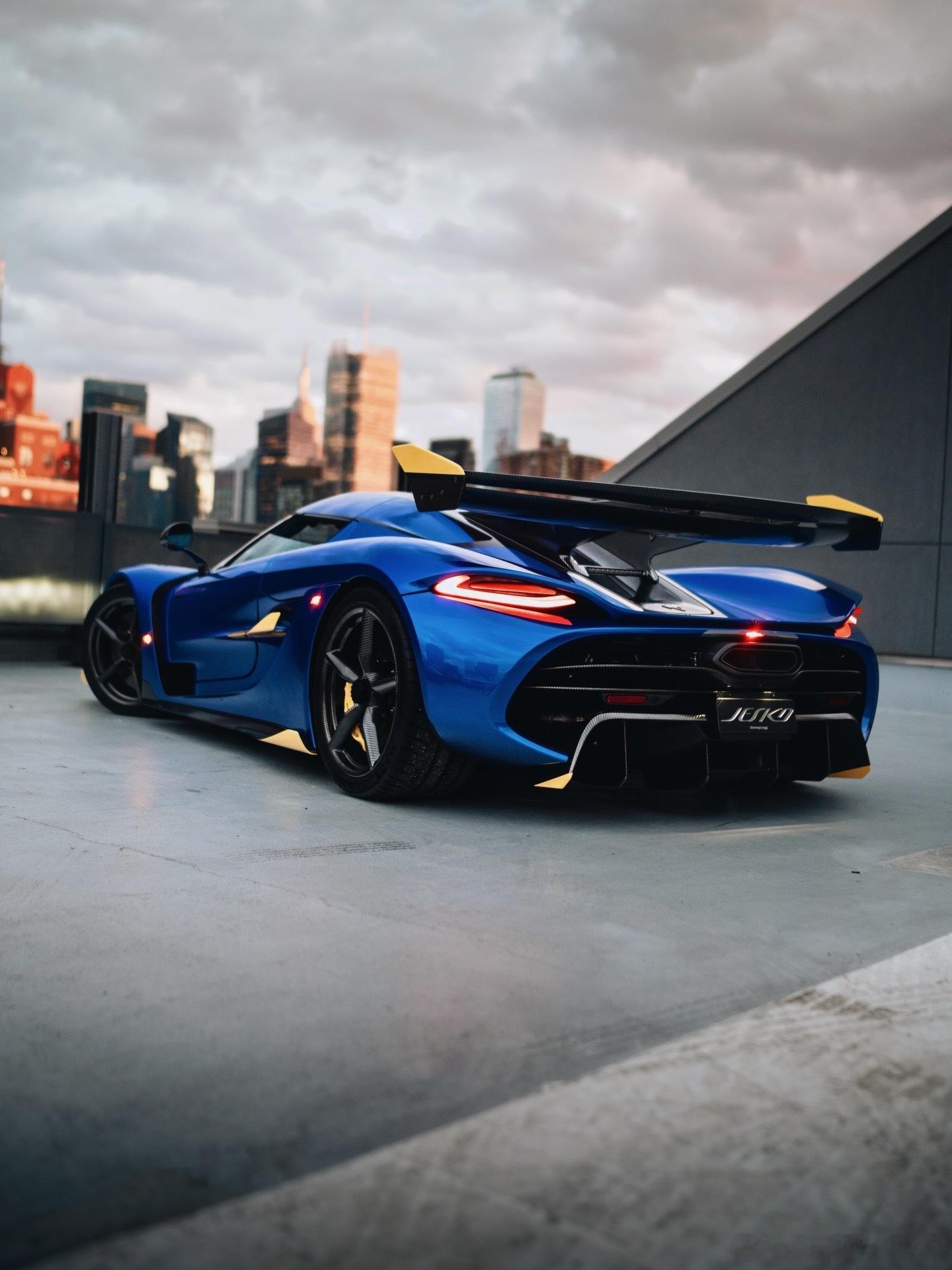 KoenigseggJeskoAttack以帝国蓝为主色调,搭配黄色装饰,内