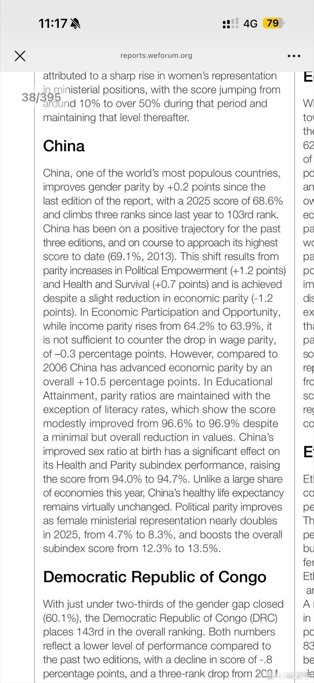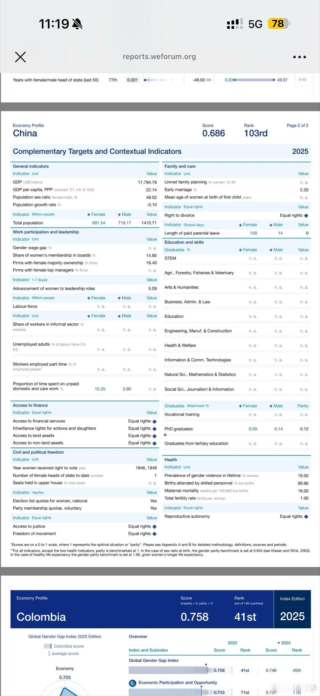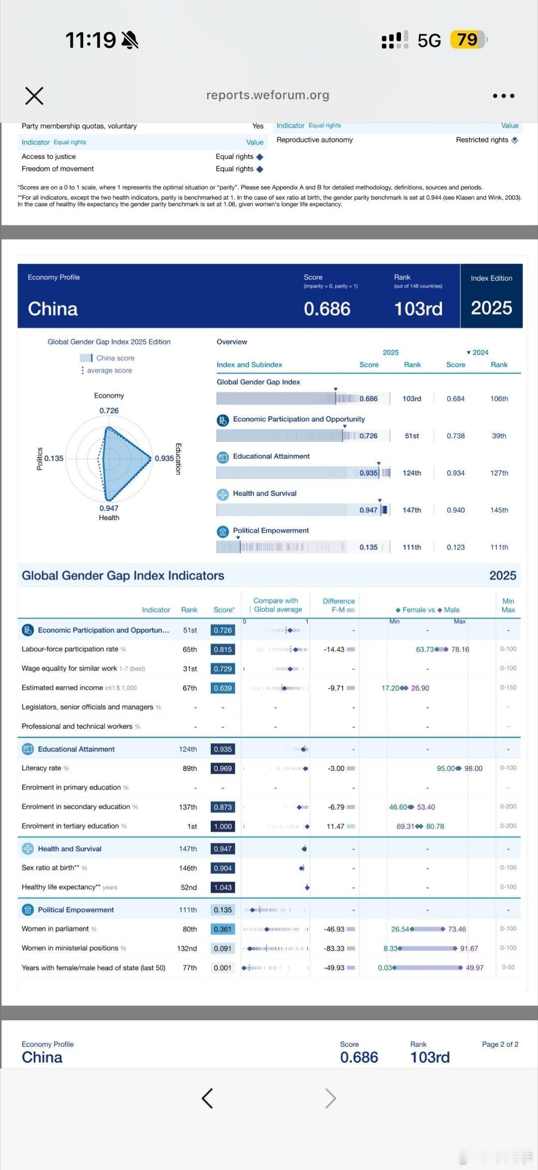 2025全球性别差距报告出炉,中国的女性居然被排在第103位,其妇女地位还不如亚洲的印度阿联酋印尼和非洲的牙买加卢旺达津巴布韦等国家。