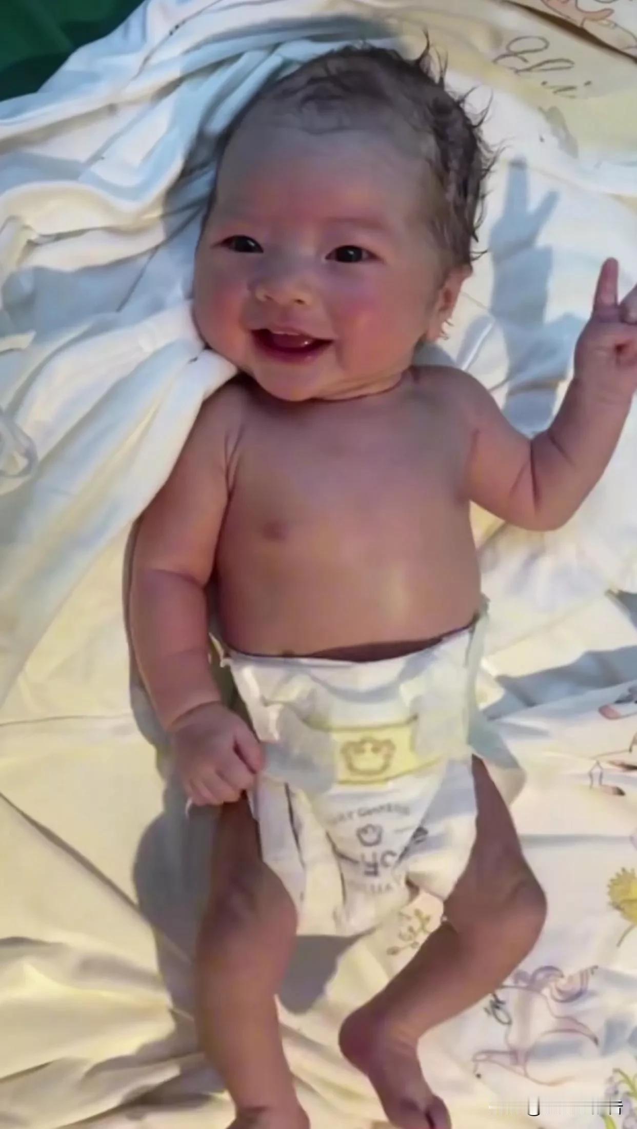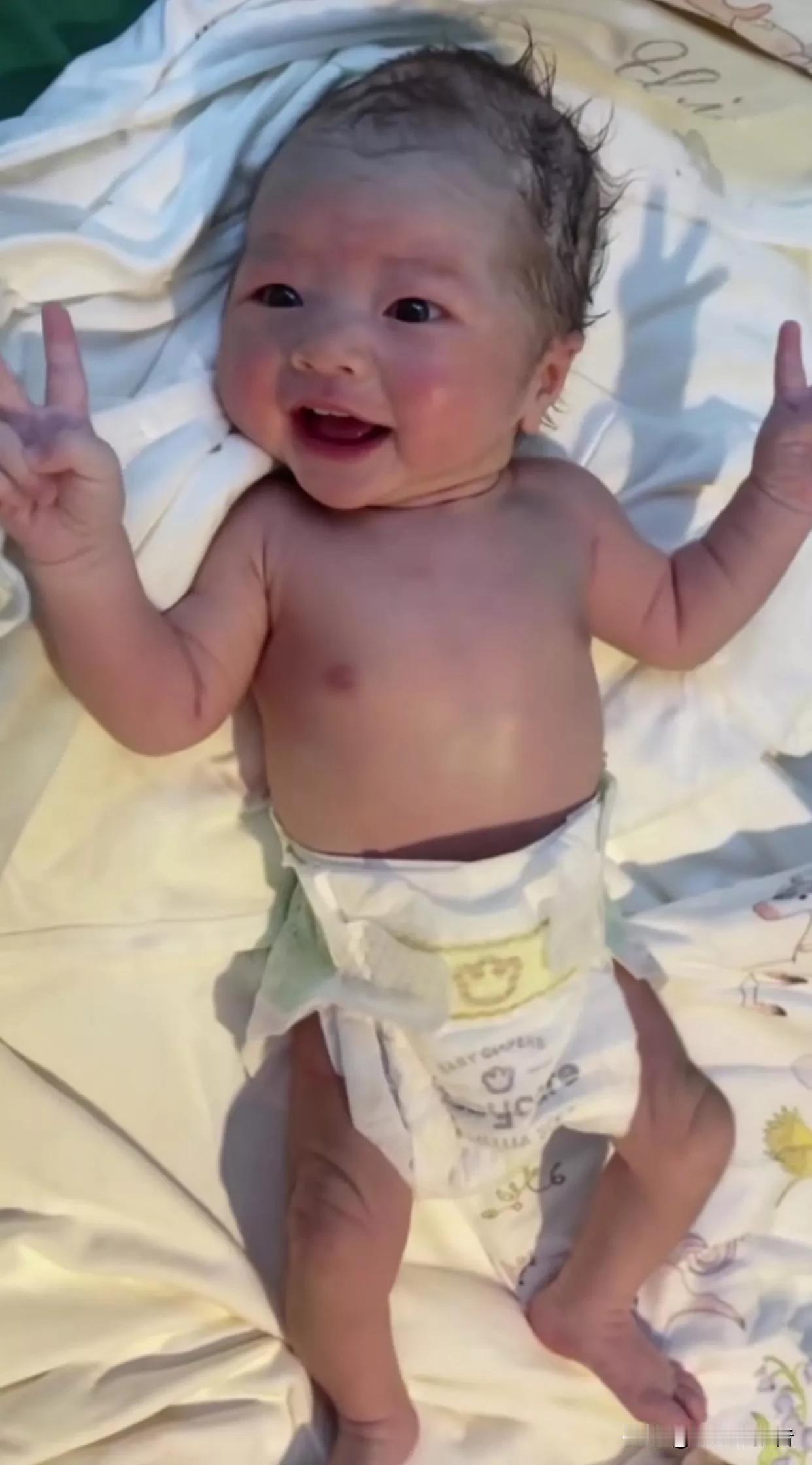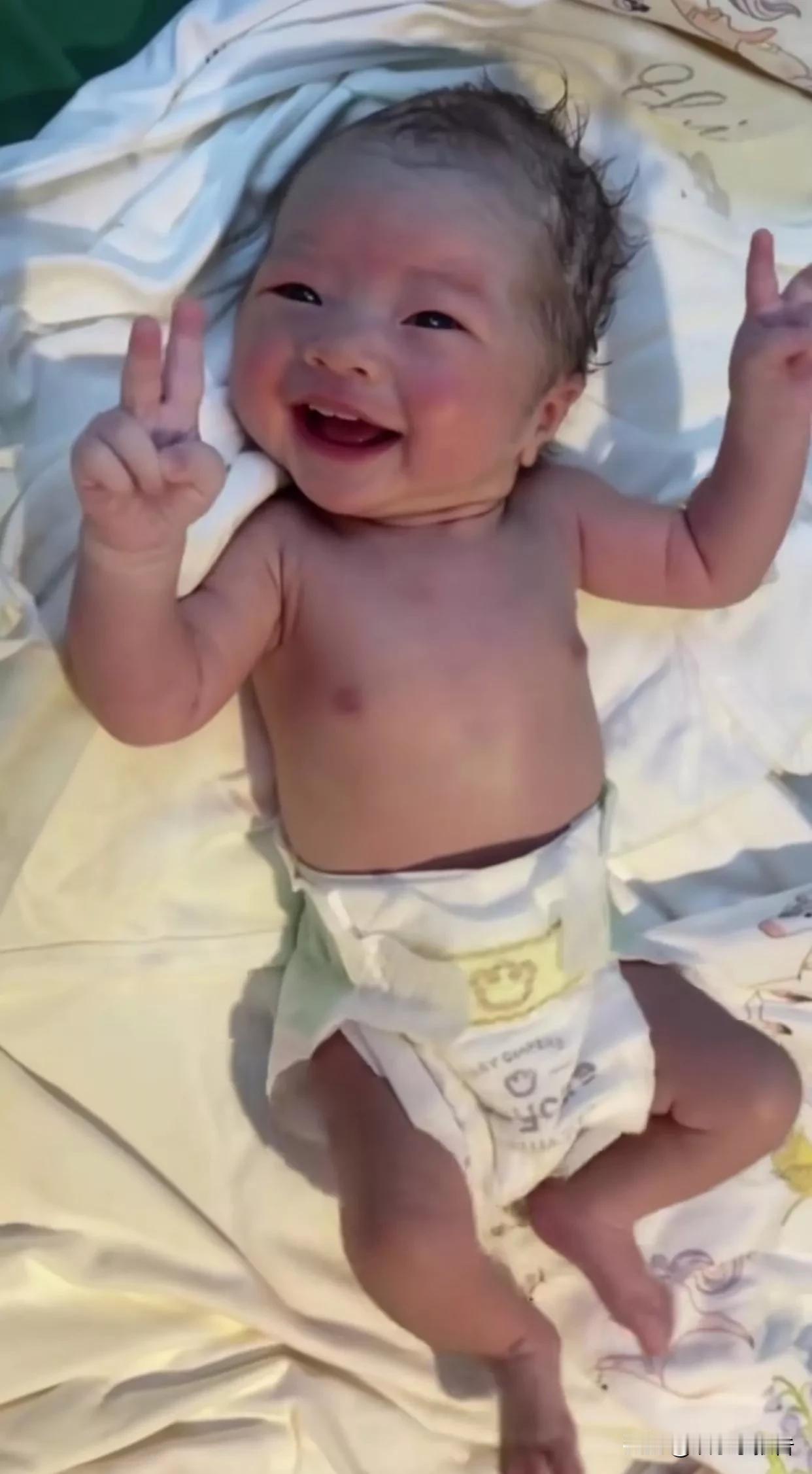 刚出生的小宝宝吧,笑容可以治愈一切,他 就像小天使那么可爱太漂亮了 居然 还会比耶