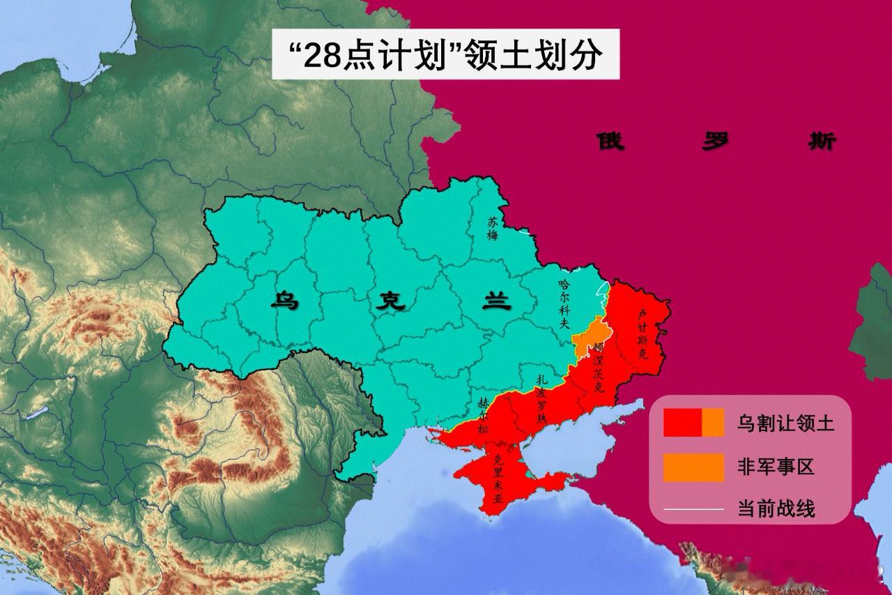 罪有应得对于乌克兰这个国家来说是丧权辱国,但对于北约和乌克兰纳粹来说,这是罪有应得!28点计划还有其他方面约定,重点如下:1、乌克兰军队规模不得超过60万。2、乌克兰不得加入北约,但可以加入欧盟。3、乌克兰承认俄语也是其官方语言。4、乌克兰东正教仍属莫斯科牧首辖区。5、北约国家不得在乌克兰部署军队。6、乌克兰将在100天内选举新政府。7、西方陆续解除对俄罗斯的各项制裁。