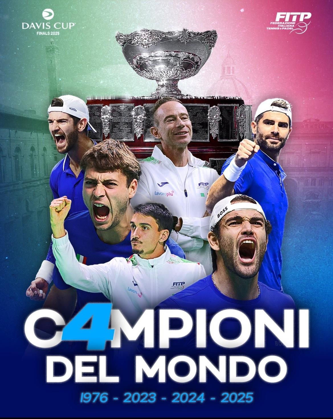 意大利队击败西班牙队,连续第三年夺得戴维斯杯总冠军,总第四冠!