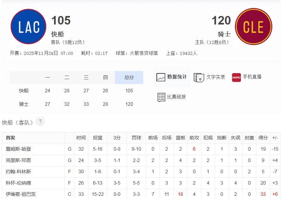 快船咋整?伦纳德回来也救不了快船。 105-120,又是15分惨败骑士的一天,这次,伦纳德复出了,可依然,没有办法。 今天,还和柯林斯撞了一下,什么情况,还不好说。 如今,快船该认清楚现实了,该还债了,他们得为雷霆和76人攒新了! 继国王之后,快船超市大门估计也要大开了。 没办法,没有竞争力,季后赛边沿估计都悬,更别说,打季后赛了。 果断掉,该切切掉,不要相互耽误了,没好果子吃。