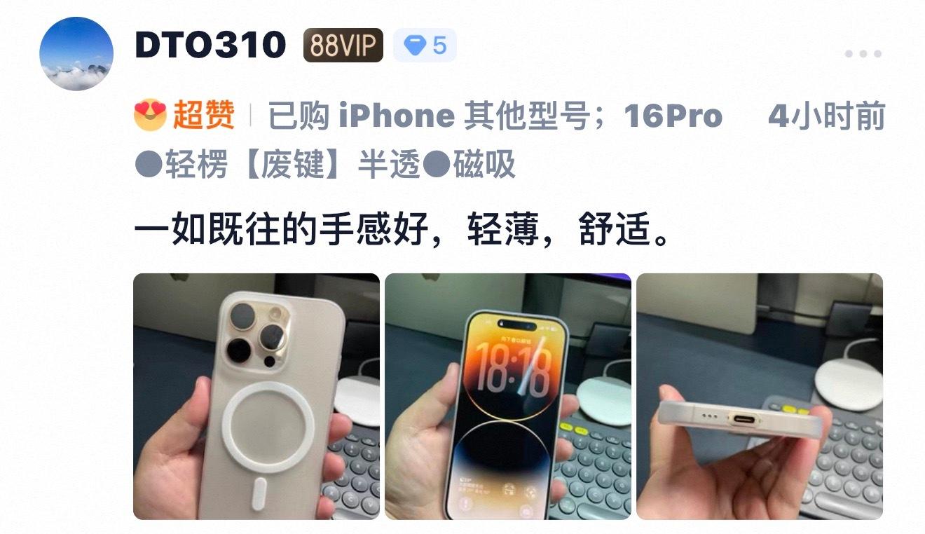 iPhone16Pro 系列超薄轻楞磁吸壳,还是挺受欢迎的戴上也有近似于裸机的好手感,表面磨砂,防指纹手汗。整体轻至 11 克起,超薄壳也自带真·磁铁。同款壳子,iPhone17Pro 系列也有哦