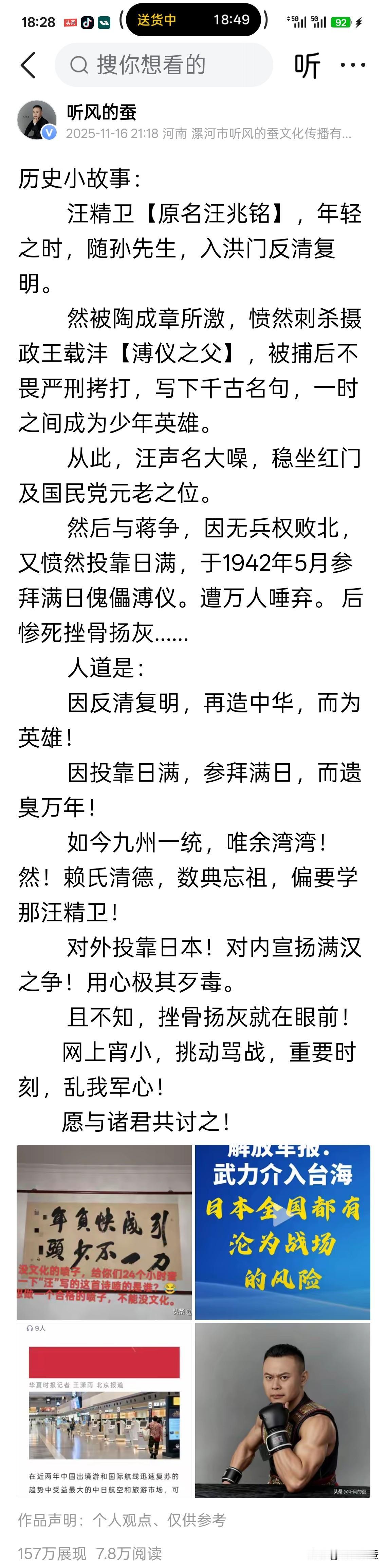 历史小故事: 汪精卫【原名汪兆铭】,年轻之时,随孙先生,入洪门