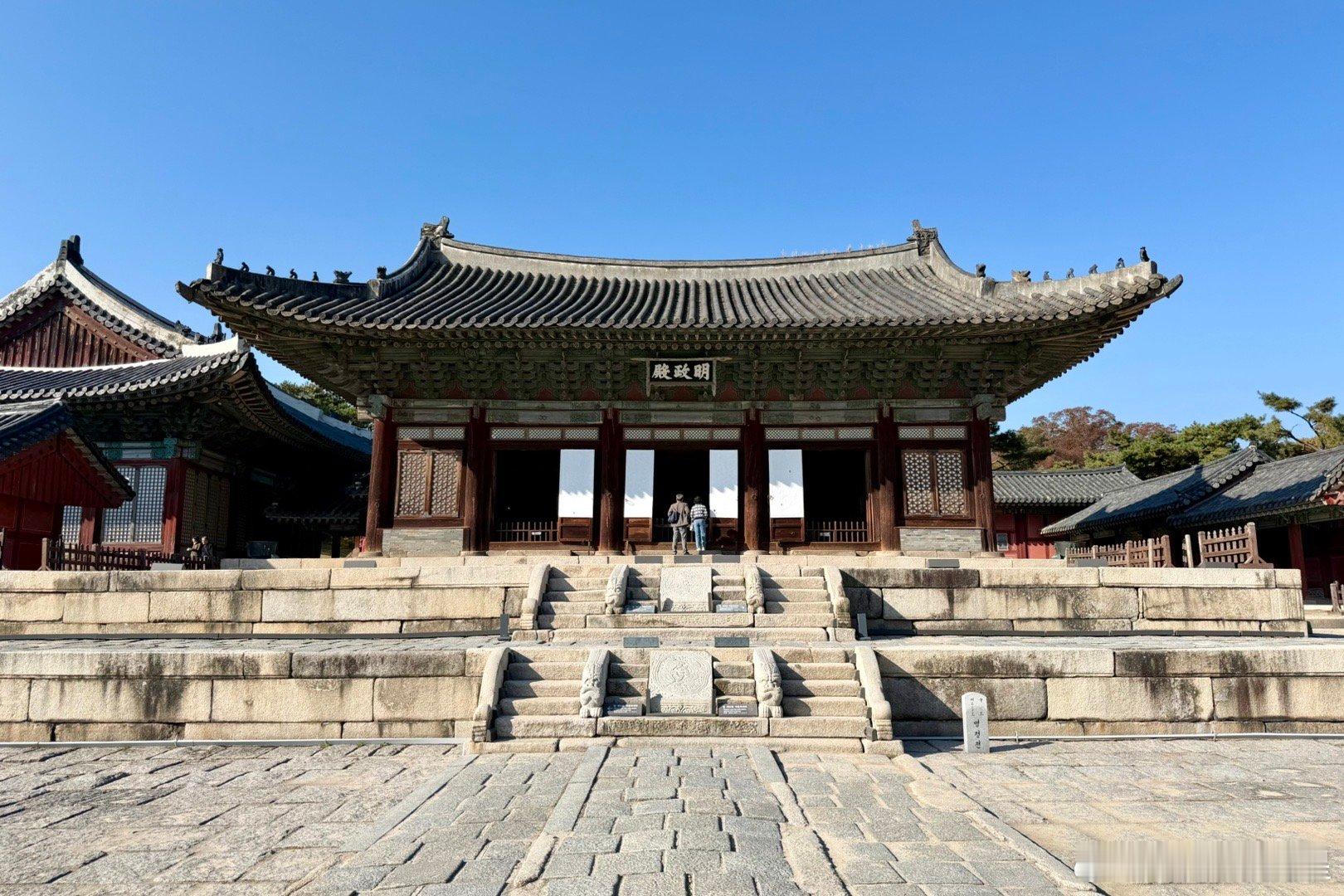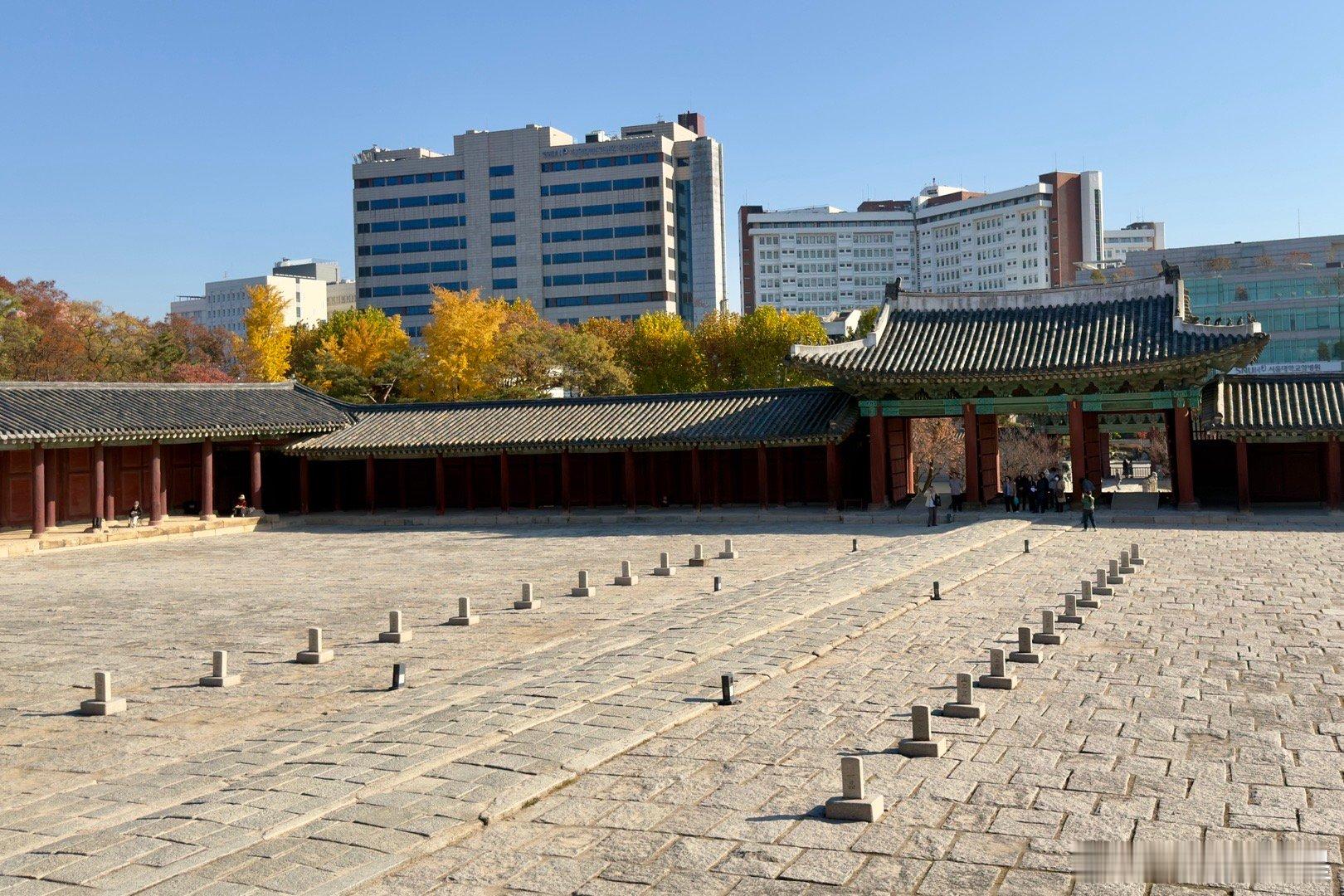 昌庆宫。汉城重要的朝鲜王朝宫殿。昌庆宫始建于明宪宗成化十九年(1483年),此宫是朝鲜成宗专l为奉养世祖妃贞熹王后、睿宗妃安顺王后、德宗妃昭惠王后等三位大妃所建。昌庆宫与昌德宫相连,形成了名为“东阙”的宫殿区。昌庆宫是朝东而不是朝南的,这是因为祭祀先王的宗庙在南侧,所以不能朝宗庙开门。昌庆宫在公元1592年毁于倭乱,1616年由广海君重建,之后历经动乱,主要的正面建筑:弘化门-明政门-明政殿都保留了下来,其中明政殿是韩国现存最古老的王宫正殿,是韩国国宝。韩国还有三个王宫正殿,分别是1804年的昌德宫仁政殿,1867年的景福宫勤政殿,1906年的德寿宫中和殿。昌庆宫在19世纪的时候经历过大火,很多宫殿都不存了。1910年日本吞并朝鲜之后,昌庆宫被降格为昌庆苑,内有动物园、植物园和游乐园。直到80年代,昌庆宫才被恢复。