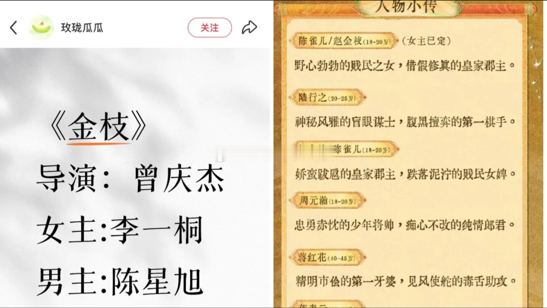金枝主演阵容来了,李一桐、陈星旭、出演此剧。