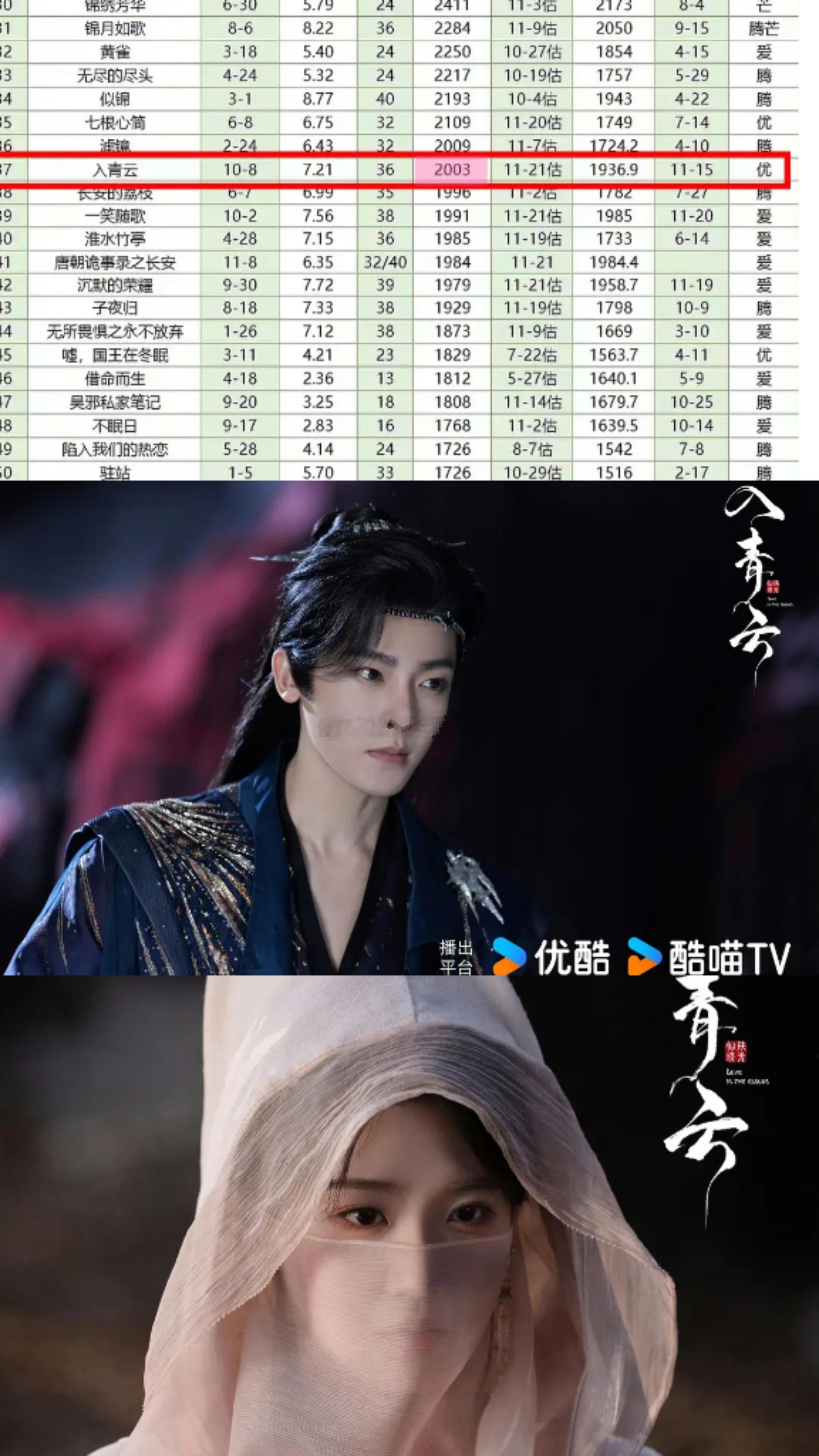 侯明昊、卢昱晓《入青云》云合集均预估破2000w
