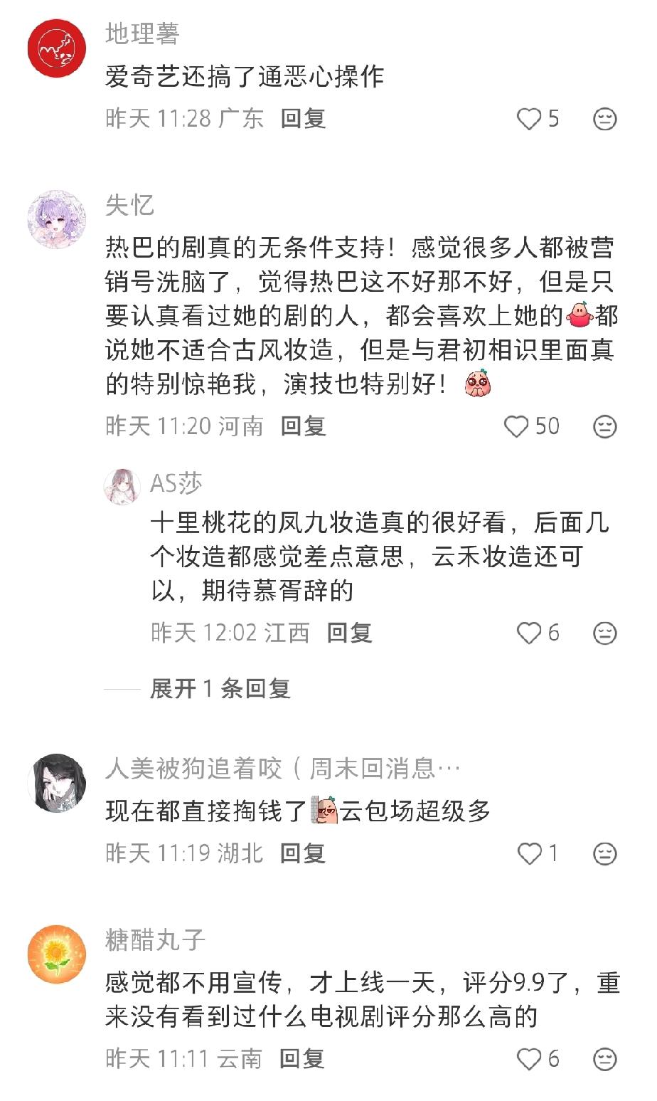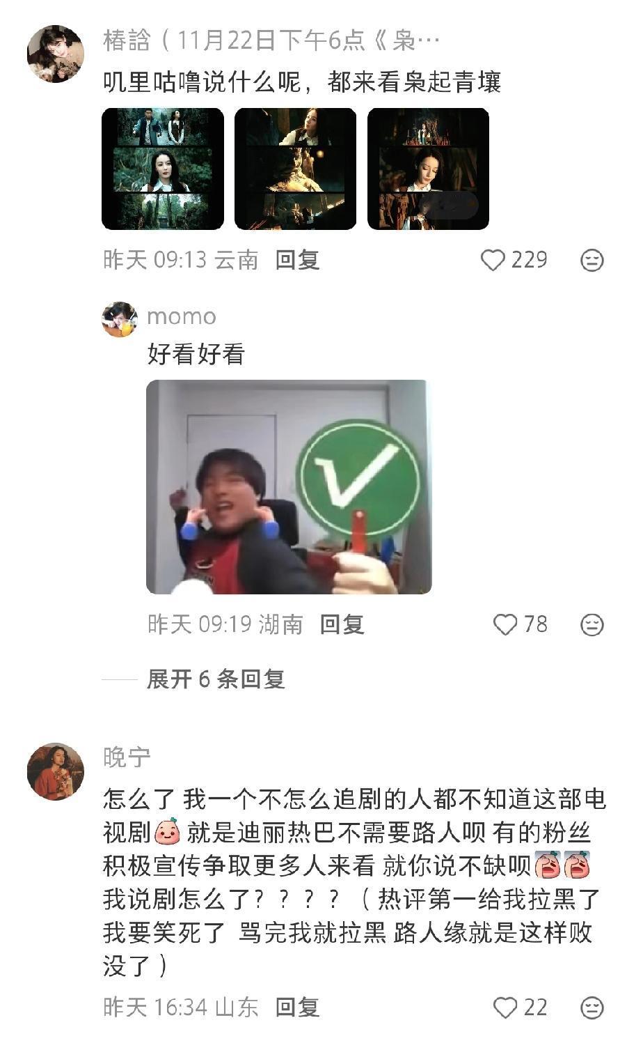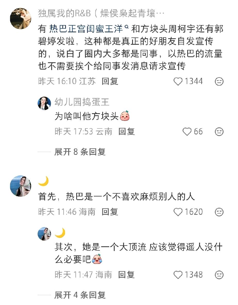 迪丽热巴的新剧《袅起青壤》,怎么没有圈内好友宣传? 看到很多网友都在讨论这个事情,毕竟像其它艺人,电视剧只要开播,圈内好友就会转发替宣传,还有的直接开启云包场模式。 可是迪丽热巴新剧开播到现在,虽然收拾率确实不错,但确实很少看到圈内好友给转发,也没上热搜。 有网友评价是说没必要,迪丽热巴本来热度就在这放着,不用宣传就已经有现在的热度了,而且这事情就是私下托好友,卖人情的事情,迪丽热巴也不想那么麻烦。