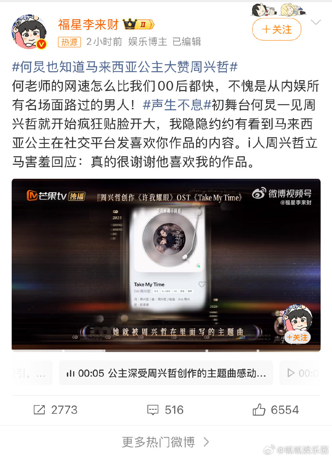 跨圈层认证来了!马来西亚公主的喜爱+何老师的认可,周兴哲这波牌面拉满~