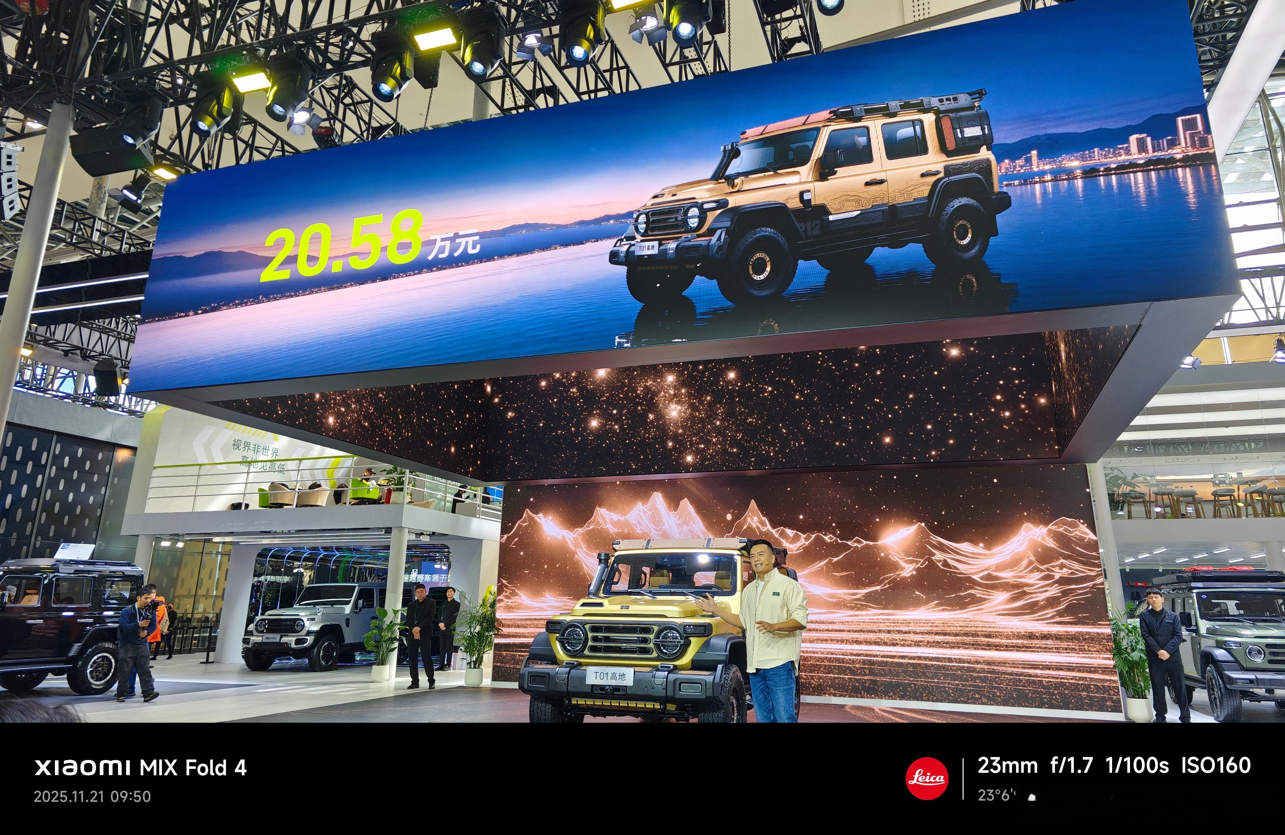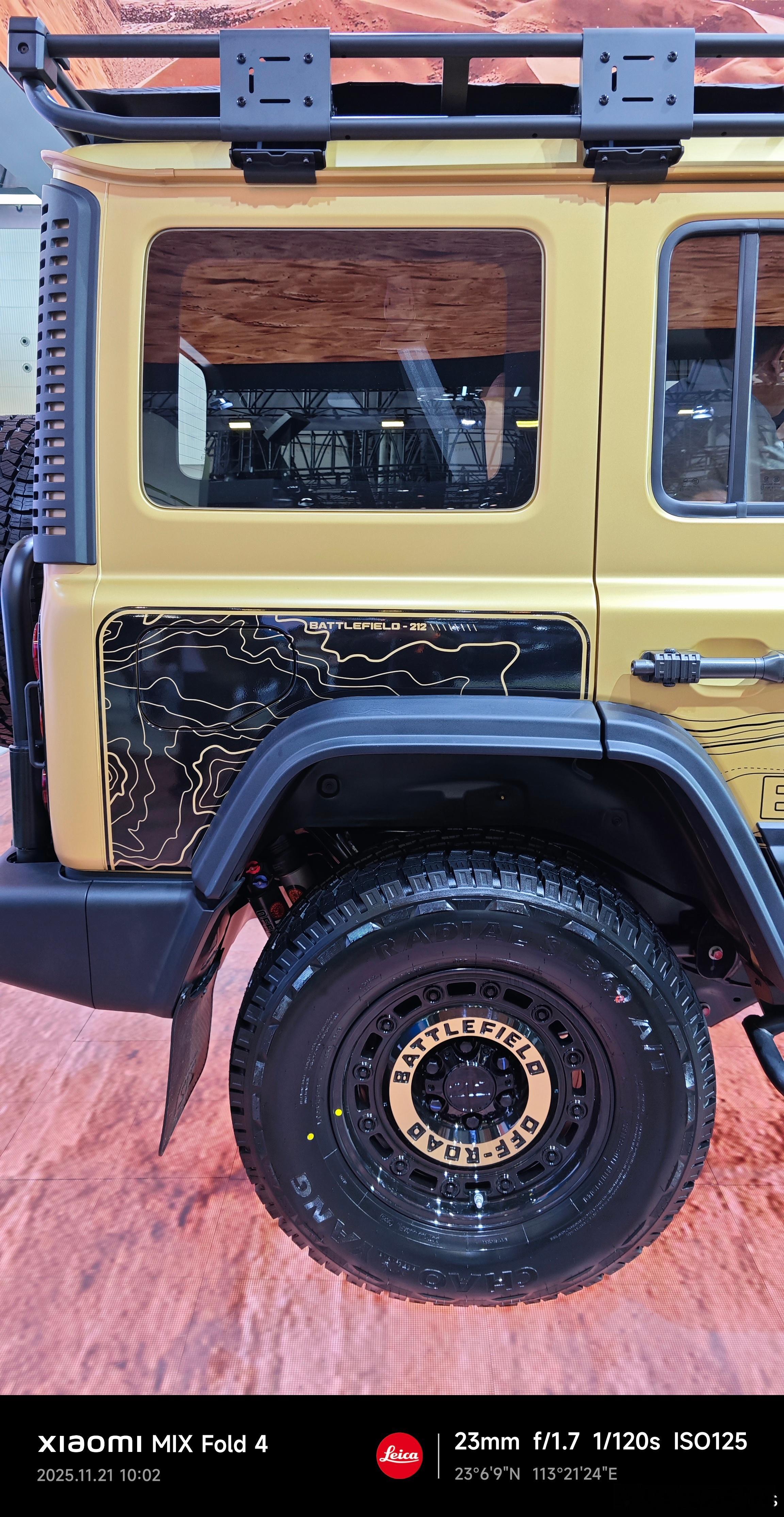212 T01高地版,官方售价20.58万,你可以视其为官改「高定+越野升级版」。再也不用纠结改什么、怎么改,现在出厂就给你全部改好。原厂改装的好处在于合规性和可靠性,避免了用户后期自行改装的潜在风险,合法合规的上保还有年审。当然原厂改装的审美也很重要,这决定了客户愿不愿意买单,好在高地版的审美「非常在线」。蚌式发动机盖、三横(中网)+四纵(机盖)+圆车灯+方盒子,依然是212历久弥新的标志性经典设计。搭配专属的定制色「晨曦金」和「高地纹」,以及全新开发的车身套件,包括前灯组装饰罩、新造型前保险杠和外挂备胎装饰罩,实属好看+硬核!但212 T01高地版并非漂亮的样子货,基于专业WY越野硬桥平台,采用非承载式车身+前后硬桥结构,高地版整车比T01升高1.5英寸,再搭配285/70 R17越野大轮胎,标配前后差速锁和涉水喉。42°接近角、38°离去角、256mm离地间隙,再加上夸张的910mm涉水深度,另外OFFROAD模式也有,陡坡缓降也有,防倾杆也能断开,就是为了让你能在不毛之地摧城拔寨,基本就是全地形无差别的从从容容游刃有余。另外,高地版具备2.5吨拖挂资质,通过强化底盘和悬挂系统实现,允许用户额外牵引装备或小型拖车,用来拓宽自驾游的生活场景。