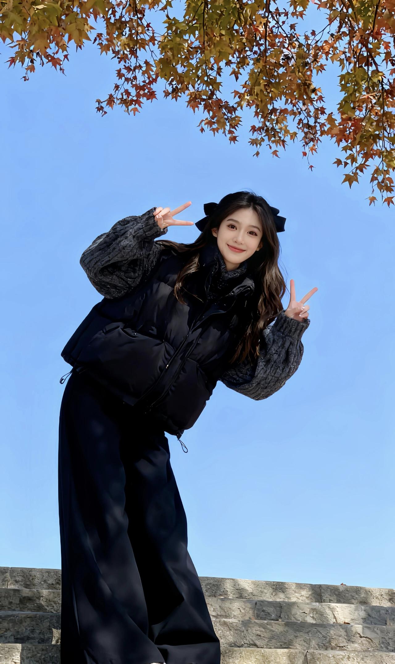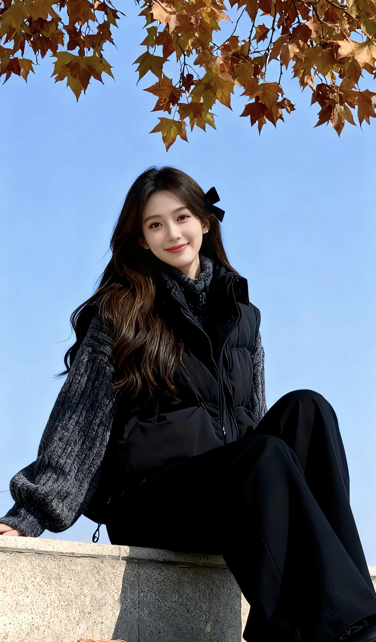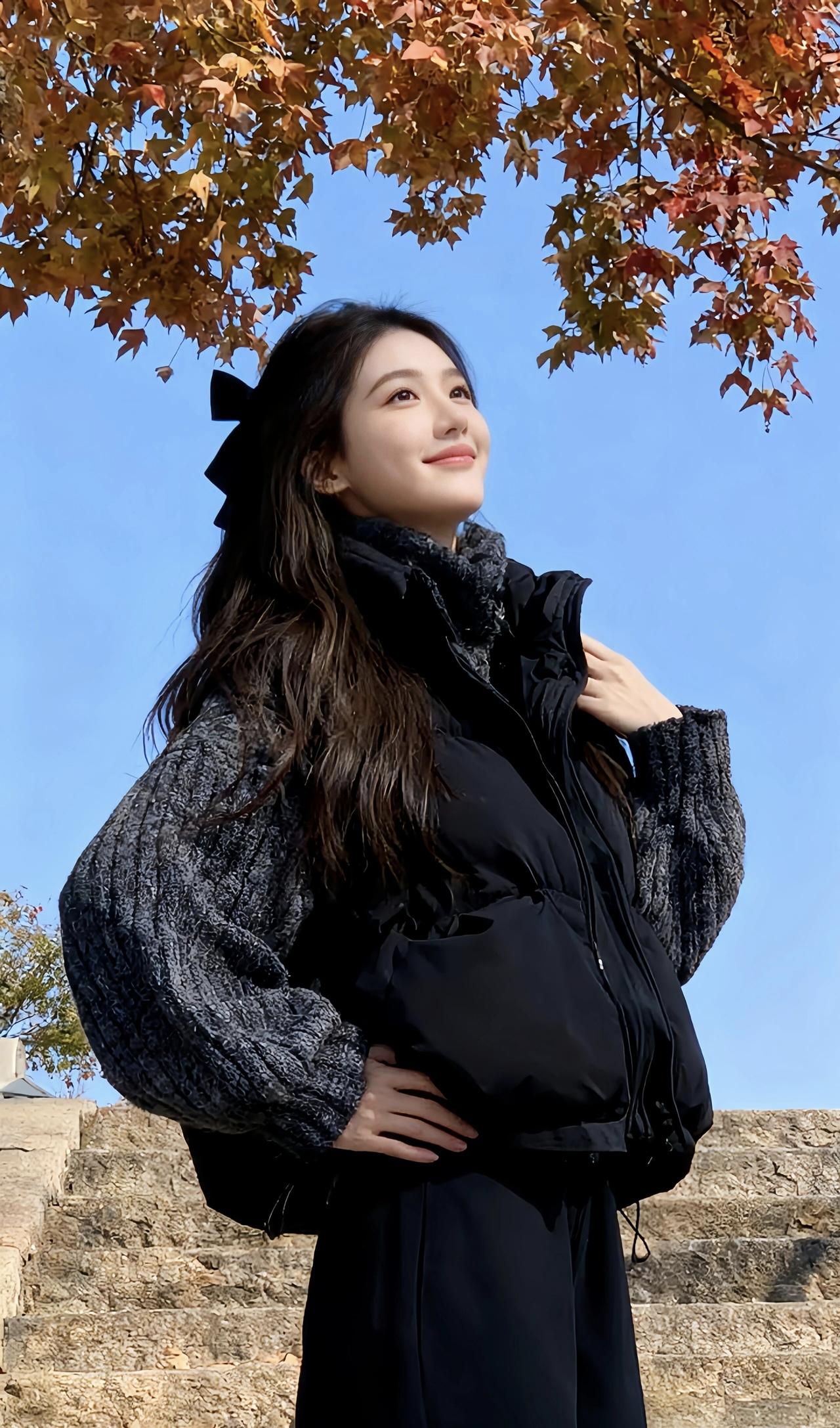 秋阳裹着焦糖色的风,把树叶染成会发光的诗。今天的穿搭是“温暖与松弛各占一半”,黑羽绒马甲裹住软乎乎的暖意,和蓝天撞个满怀~