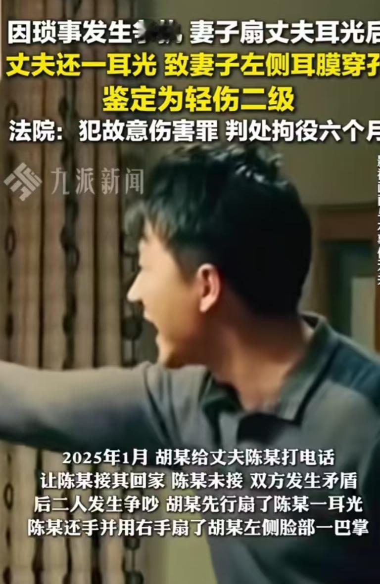 四川一对夫妻因琐事吵架,妻子一气之下,给了老公一耳光!没想到,丈夫也是不留情,反手就还了妻子一巴掌,男人的力气肯定比女人,这一巴掌直接将妻子打得耳膜穿孔,妻子哭着报了警,后经鉴定,妻子达到轻伤二级,民警将本案移交公诉机关起诉,法院判了! 说起来四川这对夫妻的事儿,真是让人唏嘘又警醒,本来就是件不大的琐事,吵两句也就算了,没想到最后闹到法院判刑,好好的家差点散了,全怪一时情绪没忍住。 这对夫妻平时日子过得也算安稳,没什么大矛盾,可那天不知道怎么回事,就因为点琐事吵了起来,具体来说就是妻子出门办事遇上了大雨,在路边冻得瑟瑟发抖,足足等了快半小时,满心指望老公能开车来接自己。 可她连着打了好几个电话、发了不少短信,那边都没回应,最后实在没办法,只能冻得手脚僵硬地拦了辆车独自回家,一推开家门,就看见老公正舒舒服服瘫在沙发上刷短视频,压根没把她淋雨受冻的事儿放在心上,这种冷漠一下子点燃了妻子的怒火,俩人你一言我一语吵得越来越凶,火气越烧越旺,谁也不肯让谁。 吵到情绪上头的时候,妻子实在没控制住自己,气昏了头抬手就给了老公一耳光,这一巴掌下去,清脆的响声彻底激怒了老公,他也没多想,反手就还了妻子一巴掌。 可男人的力气哪儿是女人能比的,这反手一巴掌力道十足,妻子当场就懵了,只觉得耳朵里 “嗡” 的一声,像是被塞了一团棉花似的,瞬间听不清外界的声音,紧接着就是钻心的疼痛感,让她踉跄着退了好几步才勉强站稳。 缓过神来的妻子又疼又委屈,忍不住哭了起来,越想越觉得不对劲,当即就报了警,民警赶到后,看着妻子红肿的脸颊和痛苦的神情,赶紧让她先去医院做检查。 检查结果出来后,大家都没料到会这么严重,妻子的耳膜被那一巴掌打穿孔了,后来经过专业的司法鉴定,妻子的伤情达到了轻伤二级的标准,这已经不是简单的家务事,而是涉及刑事犯罪的案件了。 民警随后就把案子移交给了公诉机关提起公诉,其实事情闹到这一步,夫妻俩都挺后悔的,尤其是妻子,看着还有孩子要抚养,不想让家庭彻底破碎,最后还是出具了谅解书,希望能给老公一个改过自新的机会。 但法律是讲证据、守底线的,丈夫的行为已经触犯了《刑法》,构成了故意伤害罪,不能因为是夫妻间的矛盾就一笔勾销。 很多人可能会觉得疑惑,“明明是妻子先动手的,老公还手怎么就成了罪犯?” 甚至有人觉得这应该算是正当防卫。但在司法实践中,这笔账算得很清楚。 夫妻之间吵架推搡、互扇耳光,并不遵循 “谁先动手谁全责” 的简单逻辑,关键看造成的伤害程度和反击的限度,妻子先打那一巴掌确实不对,但并没有造成实质性的身体损伤,而丈夫的反击直接导致妻子耳膜穿孔、构成轻伤二级,这已经远远超出了必要的防卫限度,属于防卫过当,自然要承担相应的法律责任。 最后法院审理后作出了判决,考虑到有妻子的谅解书、家庭还有孩子需要共同抚养等实际情况,法院没有顶格处罚,而是酌情判处丈夫拘役六个月。这六个月的刑期,不仅让他在个人档案上留下了一辈子都抹不掉的刑事污点,也让这个原本安稳的家庭蒙上了一层阴影。 想想真是不值,就因为一场大雨引发的琐事,就因为没控制住自己的脾气,动手扇了一巴掌,最后闹到轻伤二级、法院判刑的地步,妻子耳朵上的伤或许能慢慢愈合,但心里的隔阂、这段不愉快的经历,恐怕很难轻易抹去。 (信息来源:九派新闻)