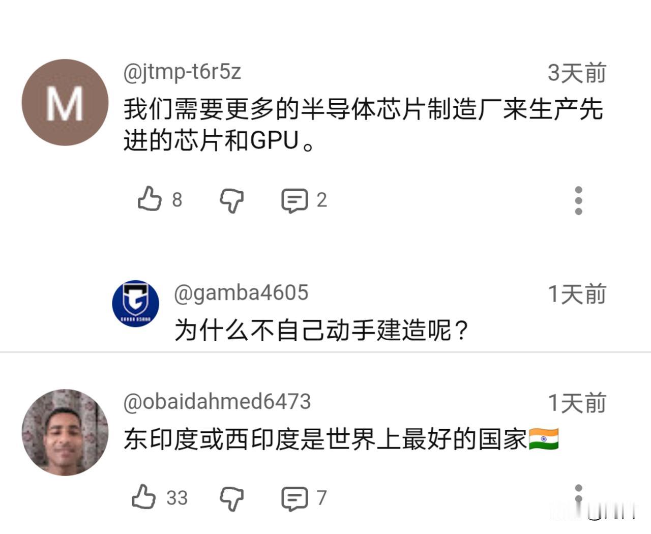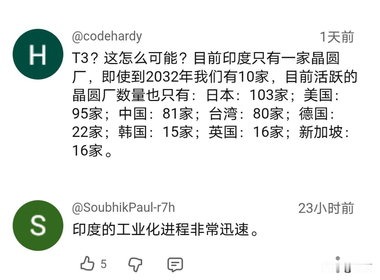 印部长:印度正在努力与中美两国并肩,以构建全球T3科技秩序。 近日,印度联邦部长在受访中表示,印度的半导体、航天技术及初创企业领域的快速发展,正在重塑其全球科技形象。短短三年内,已经建立起了一个蓬勃发展的芯生态系统,先进的两纳米芯片设计正在进行中,多家半导体企业正在迈向商业化等。 因此,他认为,在2032年之前印度的半导体技术有望与先进国家比肩,为公平的全球科技奠定基础。可以看出,在其眼里印度已经成为了不可或缺的第三极。 一直以来,印度将自己视为未来唯一可以与中美两国进行竞争的国家。只不过,要在短短的十年不到时间内就追上中美两国,印度能成功吗?这一次,印网友没有给出答案…