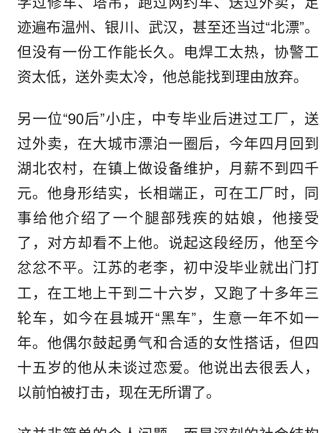 3000万男光棍在基层, 忧、悠之中慢慢过一生 《联合早报》今在报道 ...