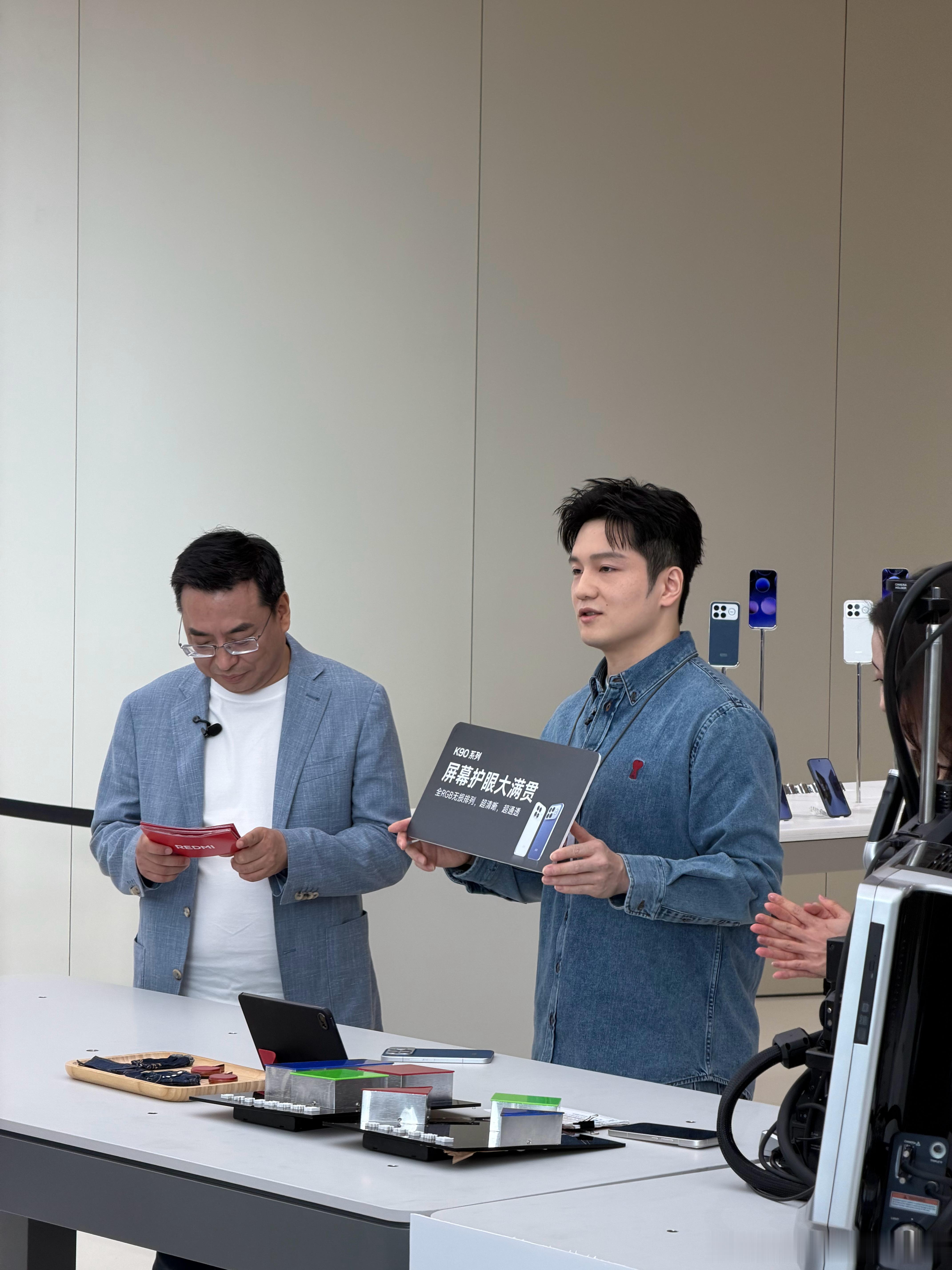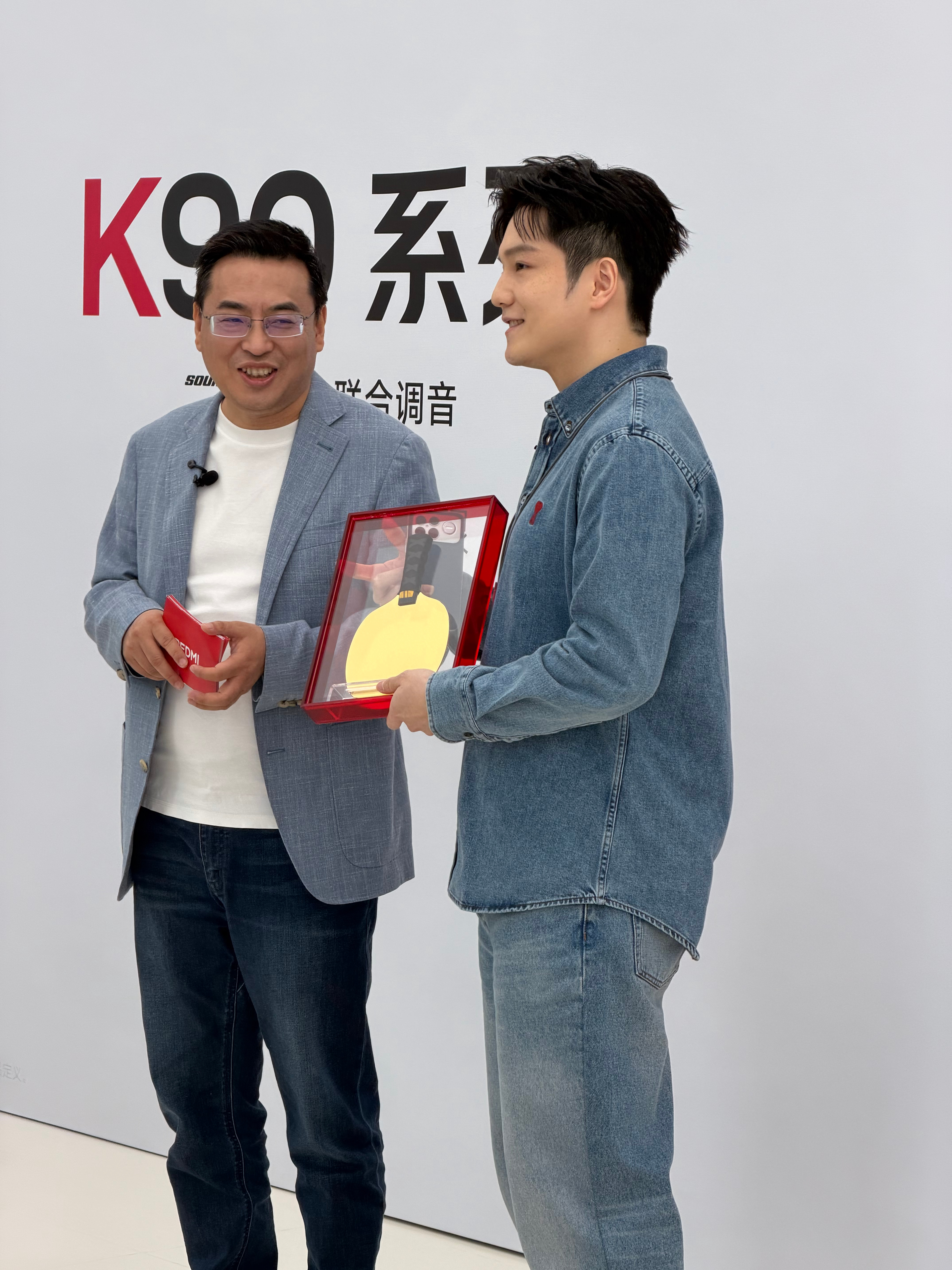 REDMI庆祝樊振东拿金牌,现场送了黄金球拍还体验了K90ProMax的先进屏幕和护眼技术这身牛仔和K90丹宁设计很搭啊