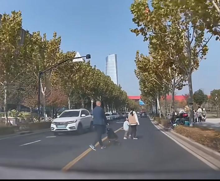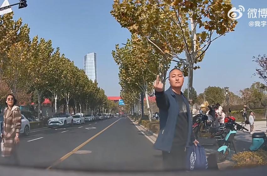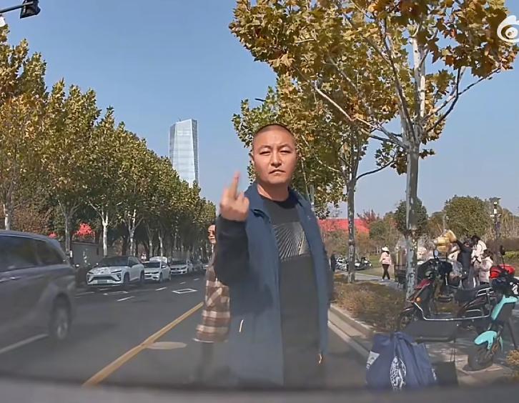 上海网友驾车突遇一家三口横穿马路,鸣笛提醒,结果这家的老公竖中指抗议,还阻止车辆通行。几十米就是斑马线,可是他们却要抄近道,还好网友驾车专注,看到他们提前减速了,鸣笛提醒他们,结果这家的老公却当做是挑衅,回头骂骂咧咧,还竖中指回敬,并站在车前,似乎是说你敢开吗?有本事压过来。