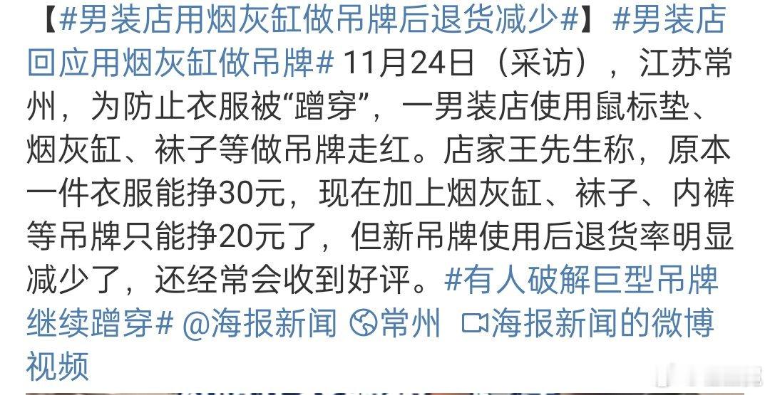 最近因为女装退货率高,商家给女装放巨型吊牌引起争议,有网友说这是对她们的不尊重,