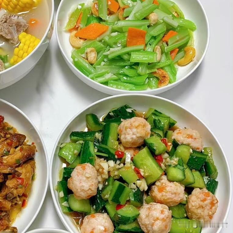红亮的排骨裹着琥珀色的糖衣,配一颗蜜渍的莲子,甜香漫过舌尖; 白瓷碗里盛着满当当