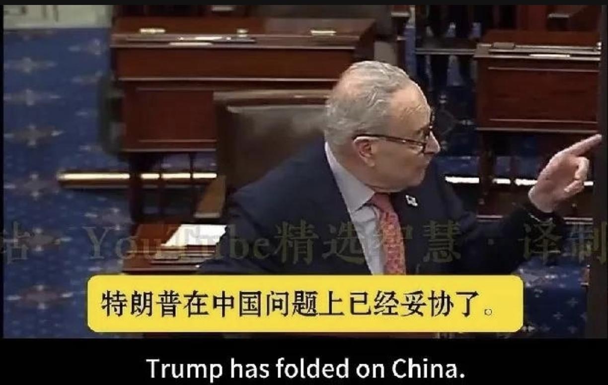 民主党官员称“特朗普对中国妥协了”,特朗普:他这么说就是叛国。 这事儿可真有意思,特朗普前脚刚和中国谈完关税问题,后脚就被自家民主党人怼着脸骂妥协投降,气得他在网上连甩三个感叹号骂对方叛国。说起来特朗普这次确实把对中国商品的高关税从145%降到了10%,这不假。可明眼人都清楚这根本不是他心甘情愿低头,而是被现实逼得没办法了。 美国国内那些大零售商沃尔玛家得宝的老板们早就坐不住了,直接冲进白宫告诉特朗普再这么加关税美国老百姓连日常用品都买不起了。更别说还有十几个州联合起来告他,全美各地爆发反特朗普游行。就连他自己任命的美联储主席都不配合降息,让他化解政府债务的计划彻底泡汤。 国外局面同样难看,乌克兰那边泽连斯基根本不听指挥,特朗普夸下海口的一天解决乌克兰冲突成了笑话。中东地区对胡塞武装的打击也是雷声大雨点小,除了炸点山地没什么实际效果。这种情况下特朗普要是再硬撑着不打贸易战,怕是明年中期选举直接凉凉。 舒默这帮民主党人骂特朗普妥协投降,可他们自己又是什么好鸟。看看民主党2024年党纲直接把中国定义为最具后果的战略竞争对手,拜登政府任内制裁的中国企业数量比特朗普时期还多。说白了民主党才是那个想往死里打压中国的势力,现在跳出来骂特朗普不过是想捞政治筹码。 特朗普这次调整关税政策说到底是被现实教做人了。贸易战打了这么久中国根本没像他想象的那样跪地求饶,反而通过对等反制让美国农业州和能源企业叫苦不迭。中国手里还握着稀土这类王牌,真要全面对抗美国自己也吃不消。 现在中美关系进入边打边谈的新阶段,10月底两国在釜山会晤同意加强经贸合作。这才是符合两国利益的正确方向,舒默那种全方位打压中国的思维才是逆历史潮流而动。世界经济三足鼎立的格局已经形成,美国还想一家独大搞单边霸权,注定是行不通的。 各位读者你们怎么看?欢迎在评论区讨论。
