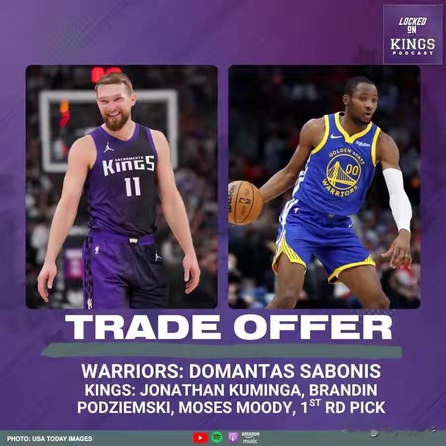 国王超市开张,勇士会拿库明加换小萨吗? 据美记爆料,国王除基根·穆雷和克利福德外都能交易,外媒给出勇士用库明加、穆迪、希尔德(可能加选秀权)换小萨和基翁·埃利斯的方案。 国王一直对库明加感兴趣,休赛期就想交易得到他,而勇士内线霍福德有伤病隐患,“老小”组合不太稳,小萨的组织、策应和篮板是勇士所需,不过库明加潜力也大,这笔交易要是成了,勇士内线实力能提升,但也失去了未来潜力股,就看勇士管理层怎么权衡了。
