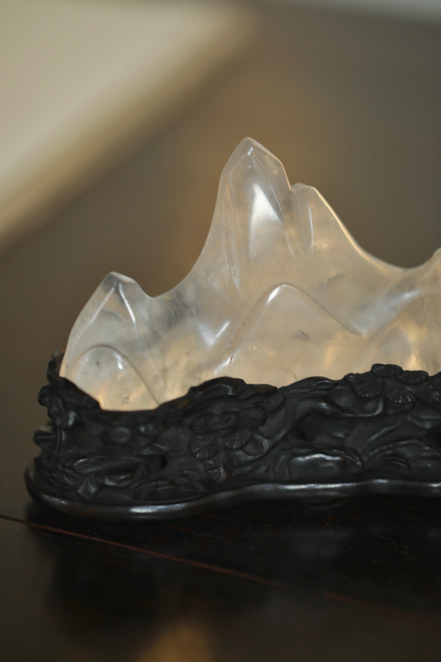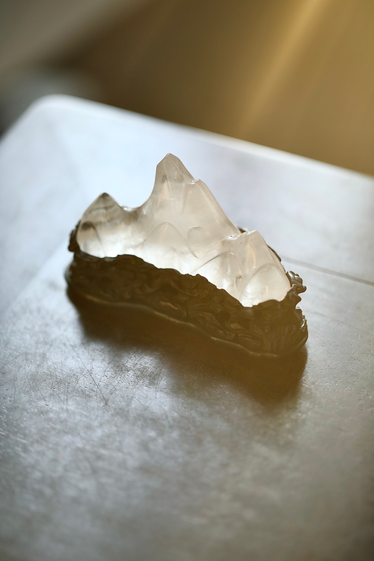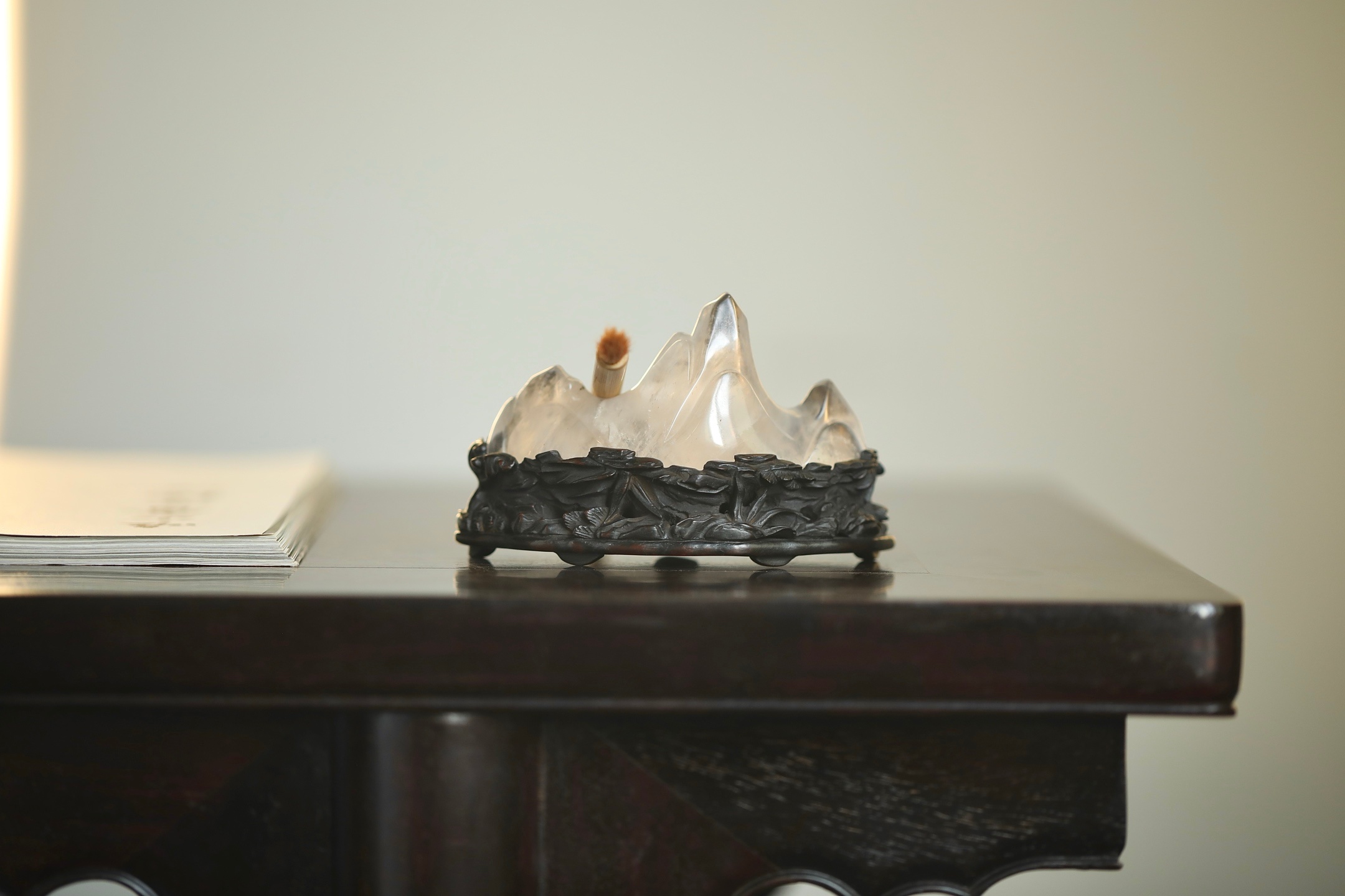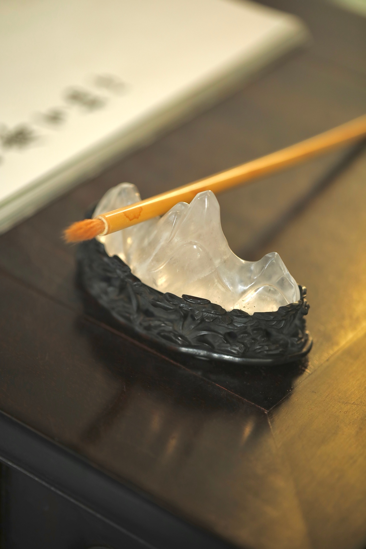水晶 | 笔架山水晶的天然纹理与人工雕琢的巧妙结合,让这件笔架如同一幅立体的山水画。置于案头,不仅实用,更添几分雅致与意境11×4.5×6.8cm