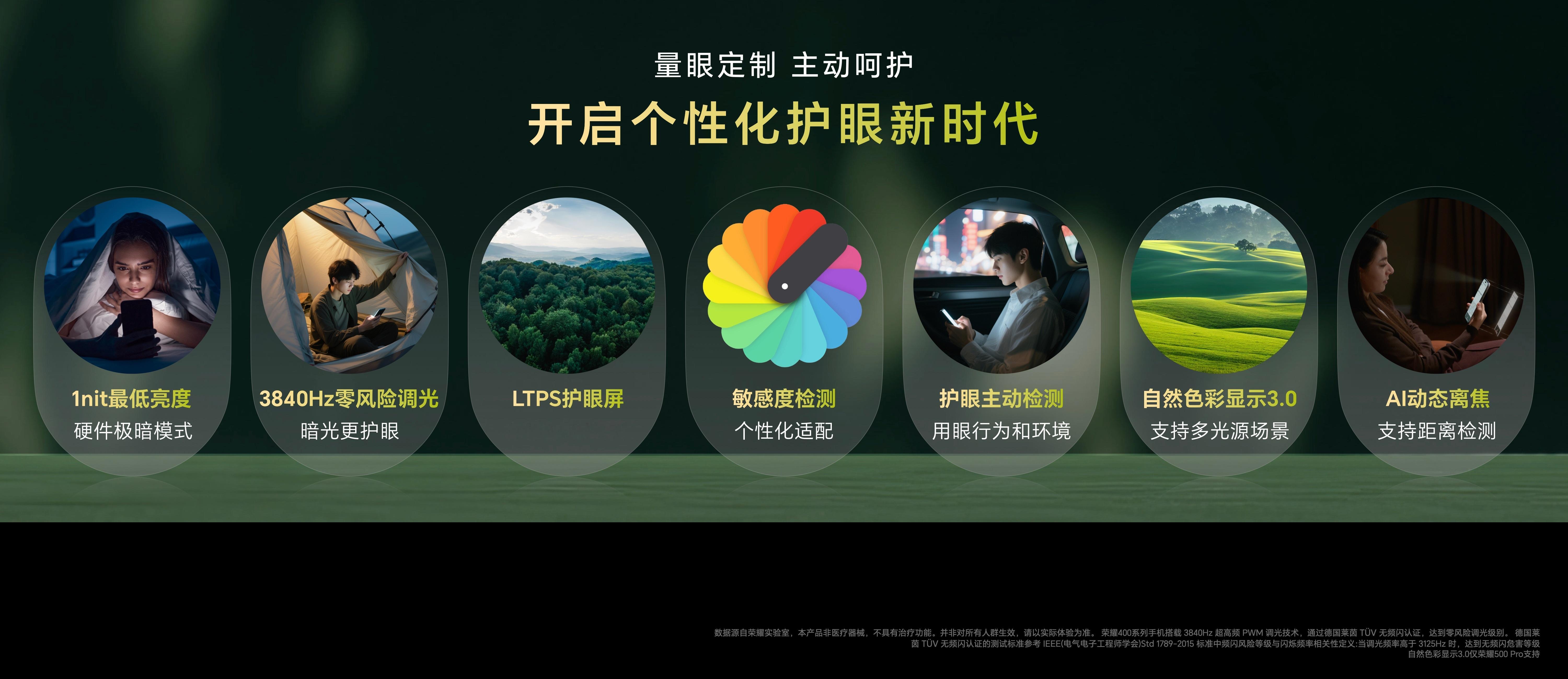 系列搭载绿洲护眼屏,具备九大护眼功能。荣耀500 Pro采用HONOR C1+射频增强芯片与骁龙旗舰芯片,针对特定场景优化网络,新增AI键与“奶龙”IP定制元素,提升交互体验。