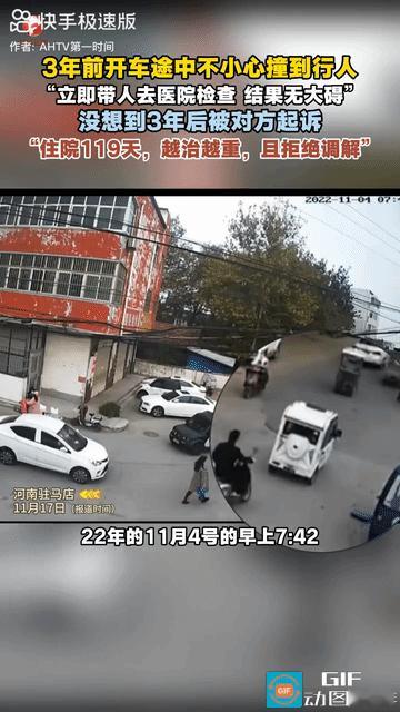 “3年前碰的现在让我赔钱!”河南驻马店,女子3年前开车不小心碰到了行人,当时立马带人去医院里检查并没有什么大事。没想到3年后被对方起诉了,说右腿受伤很严重,住院了119天一直都没好,现在越来越严重了,需要女子负责,而且拒绝调解! 根据视频显示,2022年的11月4号的早上7点42分,刘女士开车在转弯的时候不小心碰到了前面行走的女子的左腿。可以看到当时刘女士的车速是很慢的,而且也就是轻轻碰了一下,女子就稍微踉跄了一下,连摔跤都没有。 发现碰了人后,刘女士也不敢耽误,赶紧带着女子去医院做了详细检查,所幸女子并没有什么事,虚惊一场。双方就这样散了,这个事也就没啥了,刘女士也就认为这个事解决了,没啥事了,也确实接下来啥事没有。 直到2025年4月,刘女士的微信突然就被冻结,她很奇怪自己没干啥呀,是不是工作人员搞错了。于是打电话去确认才知道自己是被起诉了,而且还是被3年前自己碰到的那个女子起诉了! 她当时听到这个直接就傻眼了,当时明明没啥事啊,不都解决了吗?怎么还被起诉了?她就想不通的是都严重到住院了,当时怎么就一次也没找过她,现在都3年了才来联系自己。 她当然也不能接受这样的事情,想做第三方的一个鉴定,但是对方就是各种的不配合,导致这个鉴定也被退了。她现在都不知道要怎么办了! 对此有网友说:当时去了医院,有检查结果,没啥病情,3年后身体不适,谁知道这三年都发生了什么?这种诉状居然也接,还有天理吗? 也有网友说:可别说我们还真遇到过,对方电瓶车直行,我们出停车库,他撞上来了。当时说的没事赔他50块钱得了 ,后来还好报警了,报了强险。起码过去了一年打电话过来,说去拍片骨折了,要赔一万八! 还有网友说:你擦了她左边腿,检查结果右边有问题,咋的病情转移了? 所以这个社会就很玄幻啊,这样都行吗?她要怎么证明这个腿是跟车祸有关的,让她拿出证明来,不然就告她敲诈勒索!而且腿也对不上啊,关键是这样的投诉也有人受理是怎么回事?他们都不看证据吗?难道碰一下就要保她终身健康问题? 女子最大的问题就是当时没报警,估计是她没挂牌所以害怕,所以现在留下了这么多问题! 前段时间我公公骑车带着我儿子去上学,路上跟我们村里一个骑电动车的撞了,我公公脸被割伤了流了一脸的血,对方脚伤到筋肿了一点。 当时他看我公公那样害怕极了,态度特别好,问我们要不要报警处理。我公公说大家都是一个村里的又有亲戚关系,就不用报警了,各管各的,各自去看医生钱都自己付! 他们那边一点事没有花了一两百就回家了。我这边公公脸上缝了3针,小儿子锁骨骨裂,还好不是很严重,花多少钱我们自己出,并没有去找他们。 所幸大家都没事,花点钱也无所谓。 没想到晚上的时候,对方打电话来说他的电动车不能骑了要买新的,让我们多少帮他出一点。 妈呀,听到这个给我气笑了,我刚带我儿子从医院回来,他不说来看看这一老一小有没有事,就来要钱,我当时就让他报警,该怎么赔怎么赔,该给多少我给多少。那我这边他该赔我的钱也不能少,而且我儿子的胳膊是伤的右手,我要去办住院,住院期间的损失他也要赔,什么营养费乱七八糟的都得给,看谁赔的多! 本来就说好了各顾各,他给我来这一招,那就看谁赔的多。念到是亲戚,他却觉得我们好欺负! 事传出去,他们被骂的半死,最后他吓得不敢说了! 所以遇到车祸不管大小,不管对错,都要报警,这样才不会有那么多麻烦! 对此你怎么看? (视频来源:AHTV第一时间,侵删[祈祷])