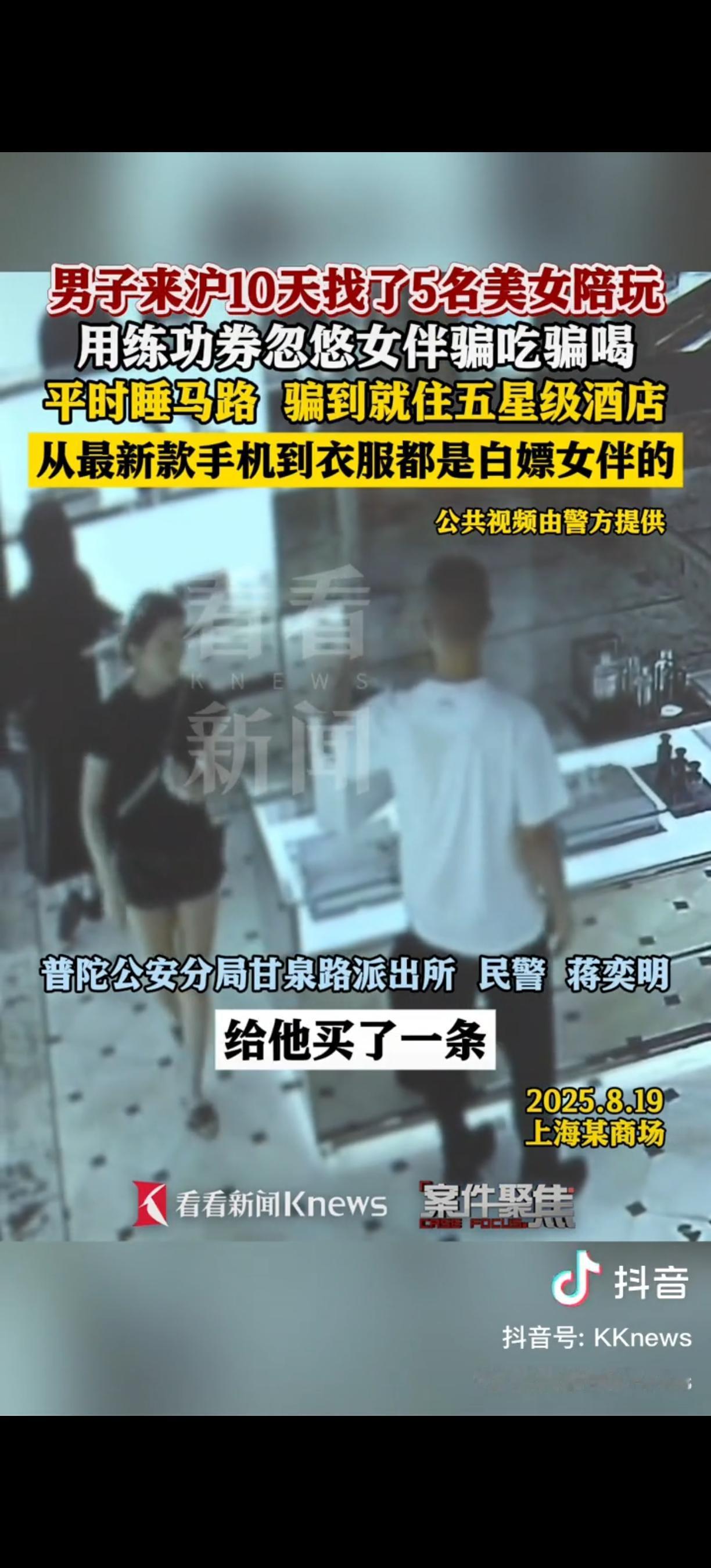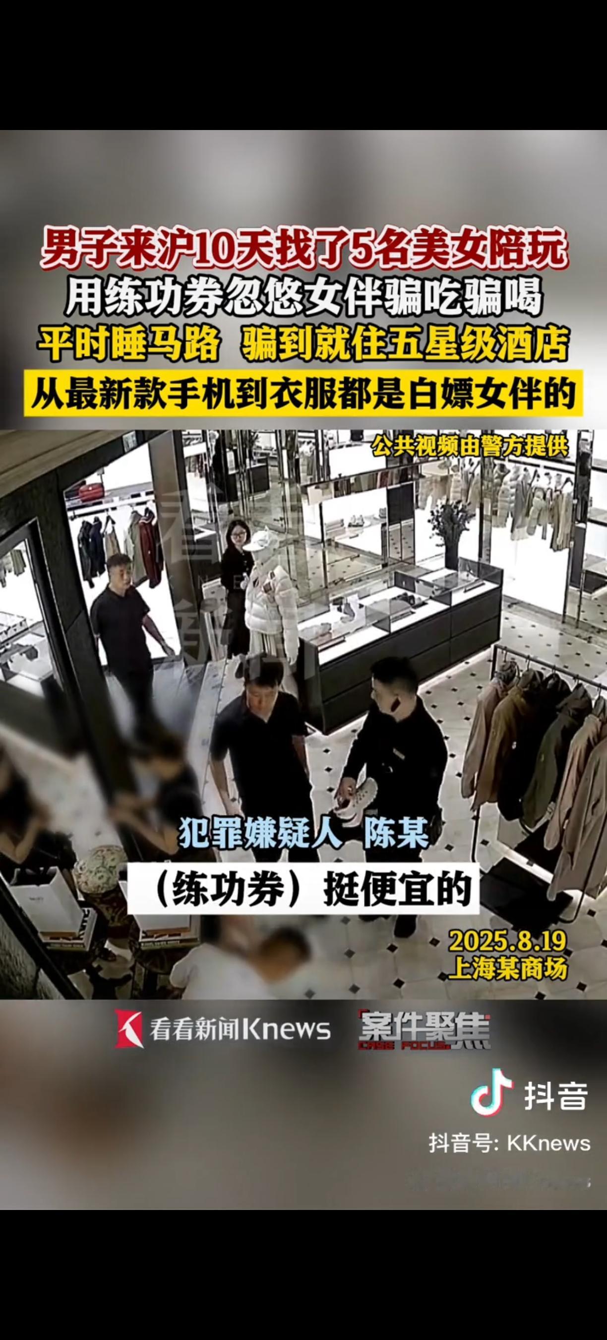 “白嫖上瘾了!”上海,一小伙十天内连续约了5名女子约会开房,匪夷所思的是,小伙竟然一分钱都没花,都是约会的女子付的款。几天的时间,让这5名女子付出了5万元。最终,小伙还是栽了。 这个小伙姓陈,小学毕业,没工作的时候就睡马路边。这次到上海后,他动起歪心思,伪装成夜场老板,在群里发消息,说自己出手大方,还能给女伴报销机票、带她们玩高端场所。 和他约会的女士们,一开始都被他的“阔气”唬住了。他会拿出一个黑袋子,里面装着练功券,上面还放着几张真人民币,让女伴们以为他有好几万现金。吃饭、开房、买衣服、买手机的钱,全让女伴们掏。有位女士给他买了条一千多的裤子,还打算继续给他买衣服,直到发现不对劲才停手。 陈某不仅骗吃骗喝骗消费,还假扮中介,从女伴们那里收约10%的中介费。他带女伴们去欢乐谷、迪士尼玩,费用也都由女方承担。有位受害女士说,和他出去,吃饭一千五、玩一趟两千,开房的钱也是自己付,他从没花过一分钱。 直到有位女士报了警,陈某的骗局才被揭穿。被抓时,他身上的最新款手机和衣服,都是受害女士买的。面对警察询问,他还满不在乎地说“我无非就是想白嫖”。 现在,陈某因涉嫌诈骗罪被检察机关依法批准逮捕。这事儿也给大家提了个醒,网上交友别轻易相信那些吹嘘自己多有钱的人,涉及钱财一定要多留个心眼,不然像这5位女士一样,钱被骗了,还落得一肚子气。 各位读者你们怎么看?欢迎在评论区讨论。 来源:看看新闻Knews 2025-11-18发布