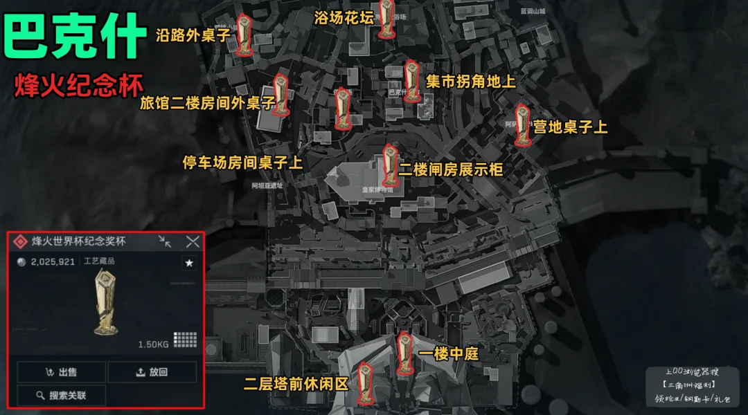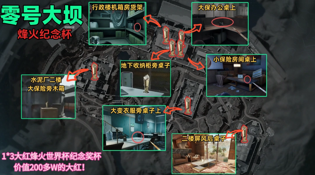 三角洲行动s7限定200万的大红烽火纪念奖杯全图刷新点位完整版来了,航天,巴克什和大坝都有!你们都捡到了吗?