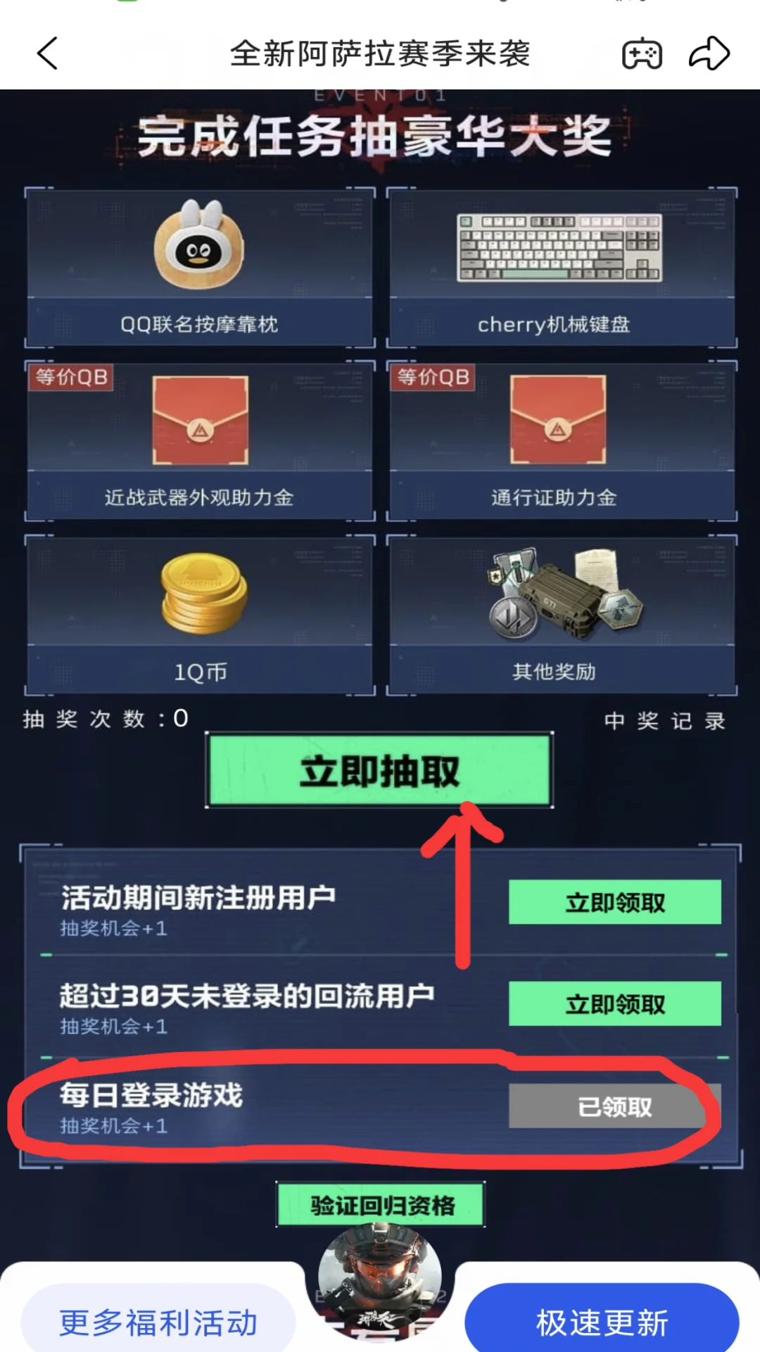 只需登录游戏就可以抽哦!