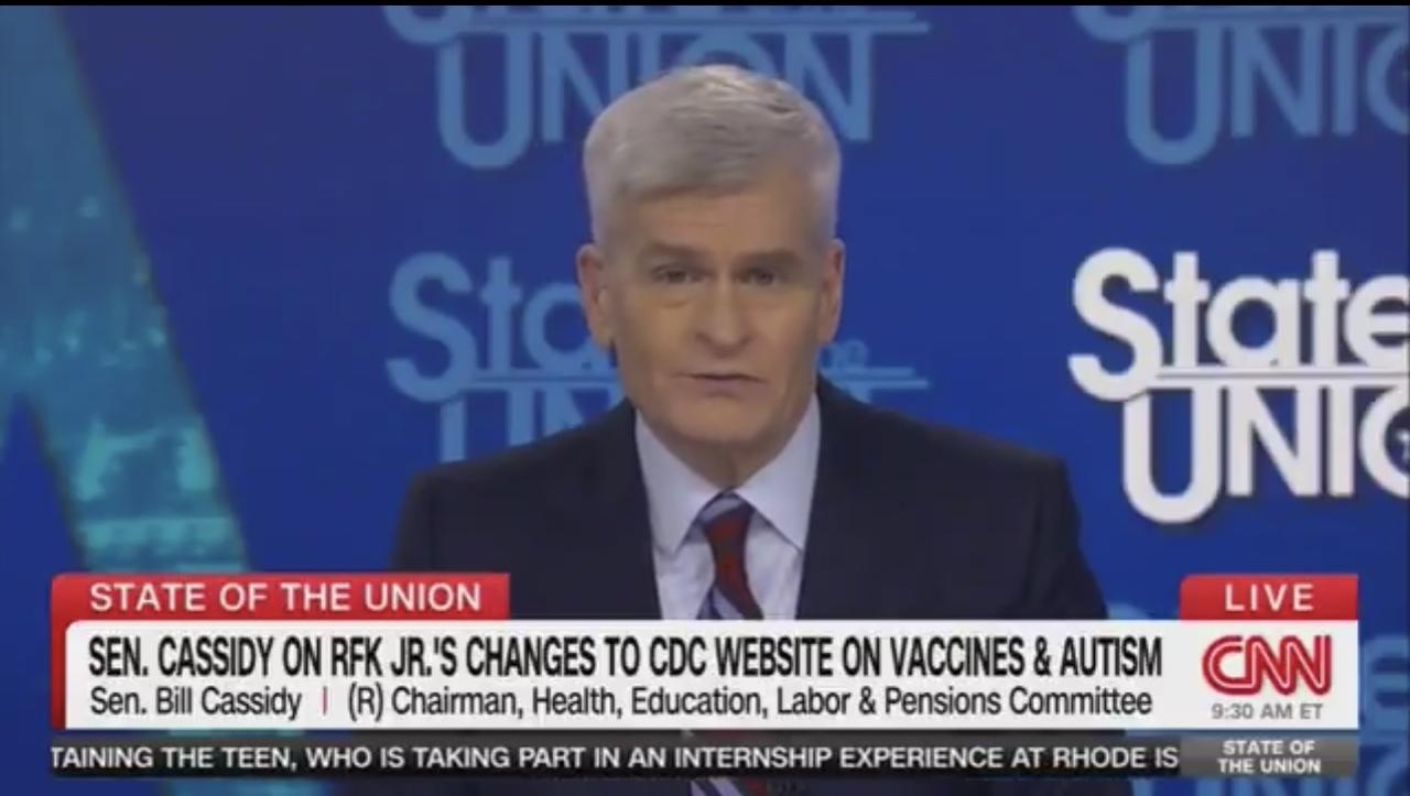 CNN主持人塔珀Tapper:你投下的决定性一票,让小罗伯特·肯尼迪得以担任卫生部长。你是不是太高估他了? 卡西迪Cassidy参议员:事实是,科学界一致认为疫苗是安全的。我只能说这么多。 小肯尼迪是著名的反疫苗人士,在他领导下卫生部,多种疫苗注射要求被取消。