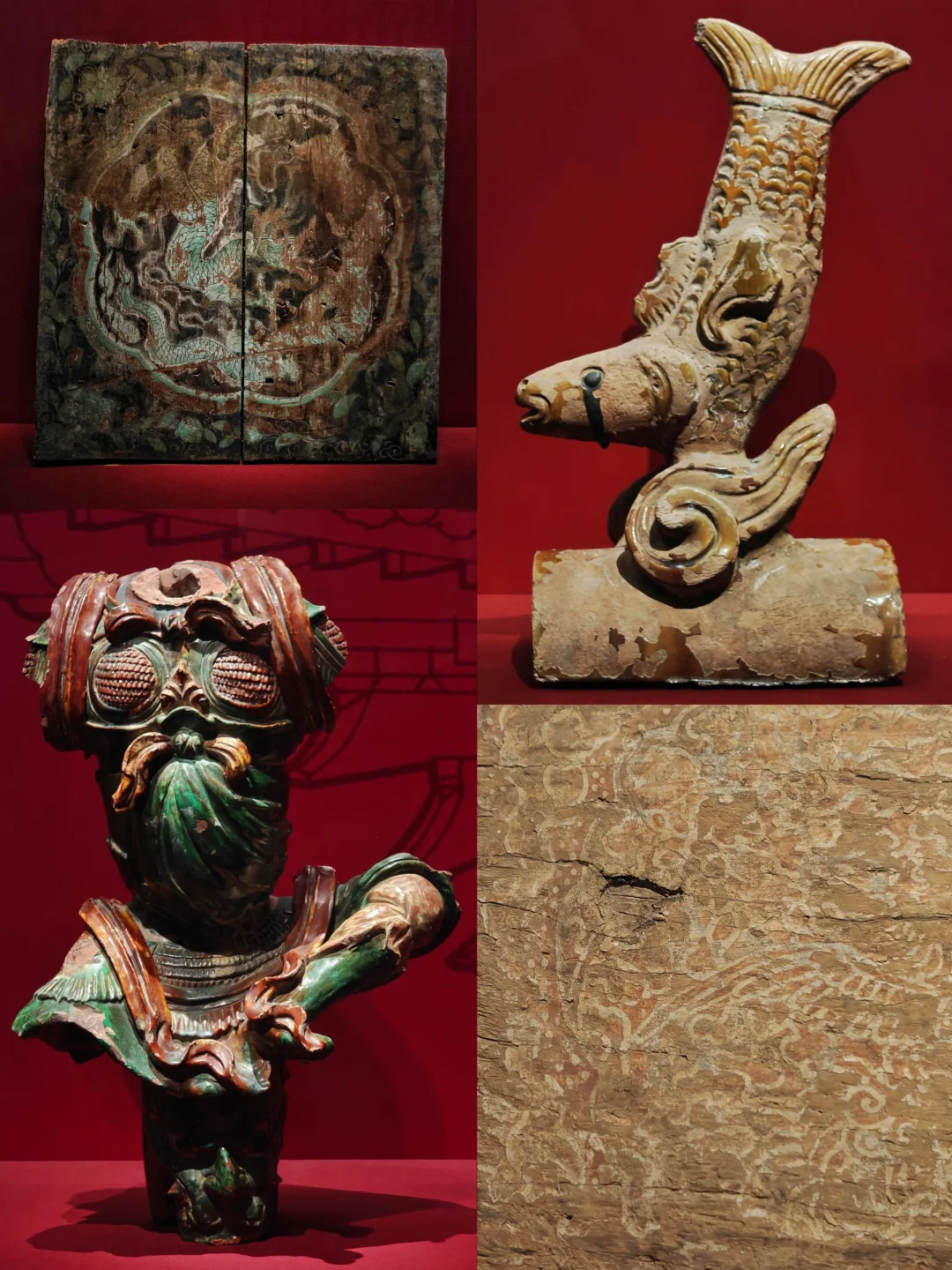🔸明《五龙捧圣》壁画(首次完整拼合展出,原藏玄帝庙,描绘玄武大帝修行圆满由五龙护佑升为神祇场景,局部沥粉贴金)