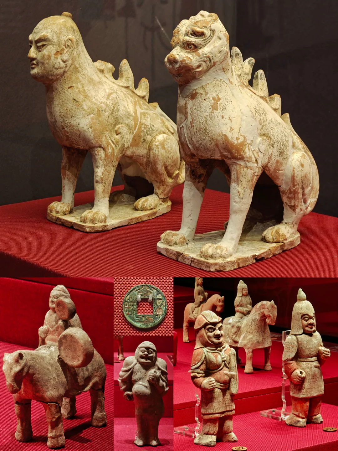 北齐 | 彩绘陶兽面镇墓兽,贴金彩绘石雕佛立像,常平五铢