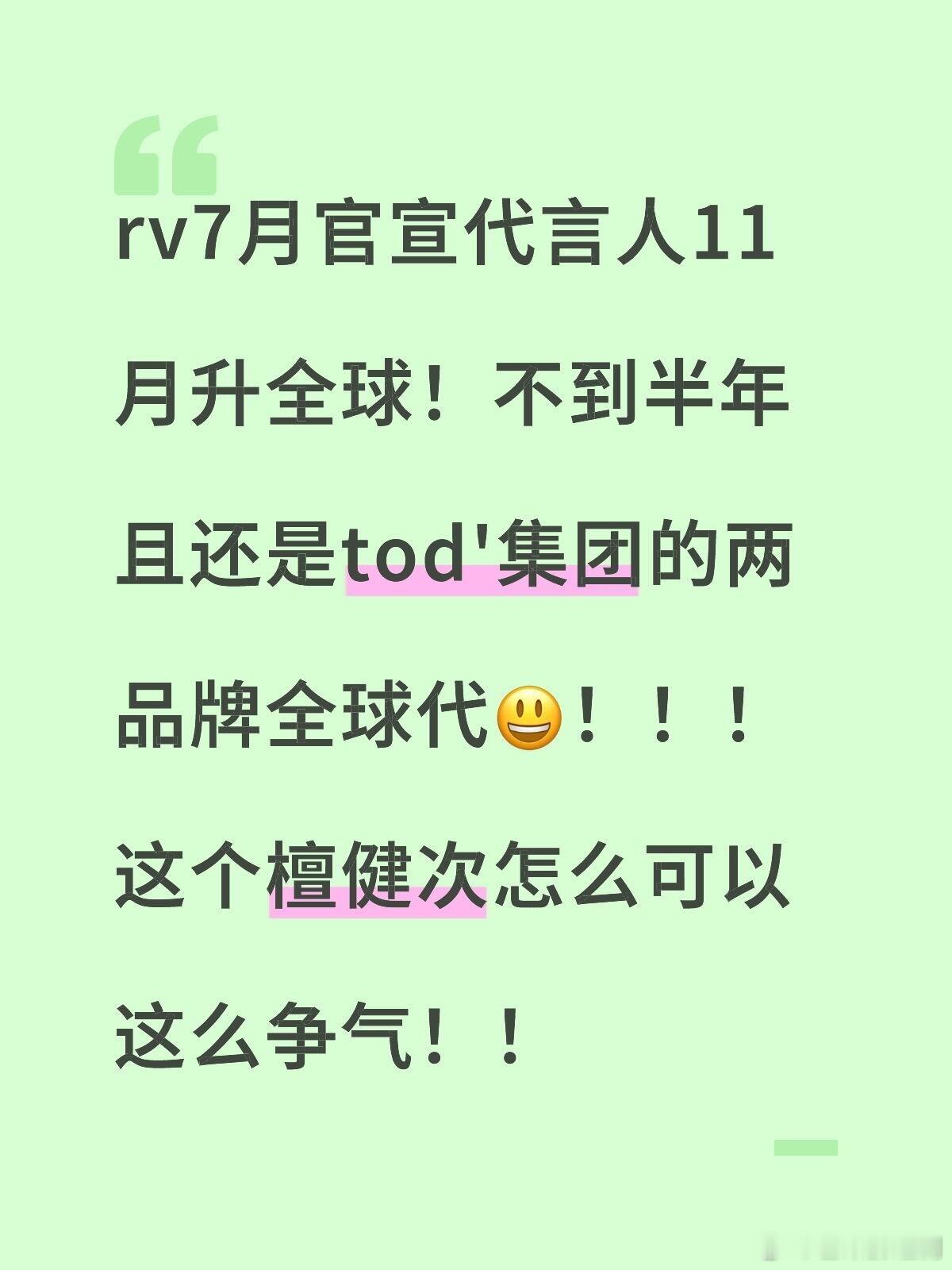 同集团品类双奢全球代言人title,RV7月官宣代言人11月升全球!不到半年且还是tod'集团的两品牌全球代!!!这个檀健次怎么可以这么争气!