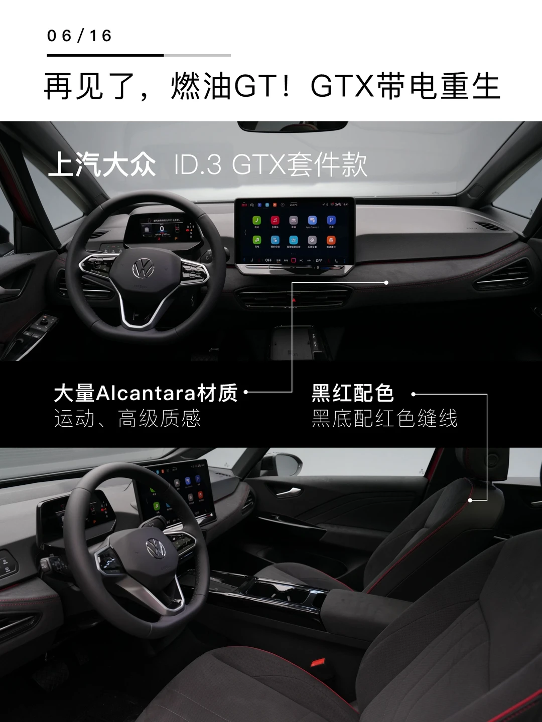ID.3GTX套件款 简直是把油车时代的「GT改装梦」平移到了电车时代。对我来说,看到红黑内饰的瞬间就想起当年攒钱改GTI的日子,现在不用折腾就能拥有合法合规的「电动小钢炮」,这种传承太戳人了😭 当然如果只是追求通勤日常使用的话,ID.3 顶配也是个不错的选择!