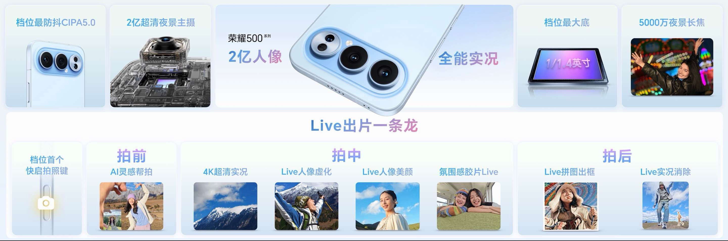 荣耀500系列终于发布了!影像很有看头,全系2亿AI超清人像+1/1.4英寸大底