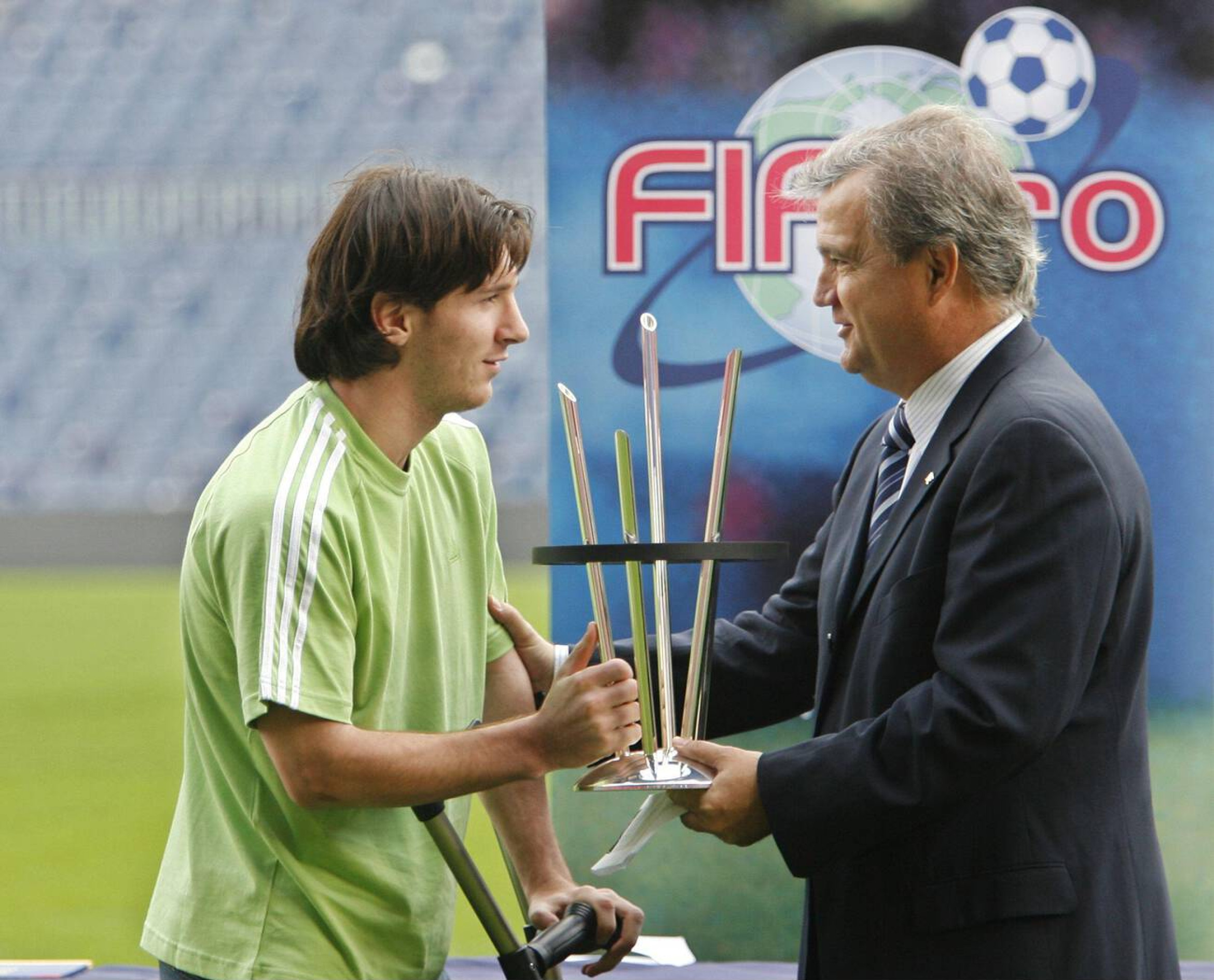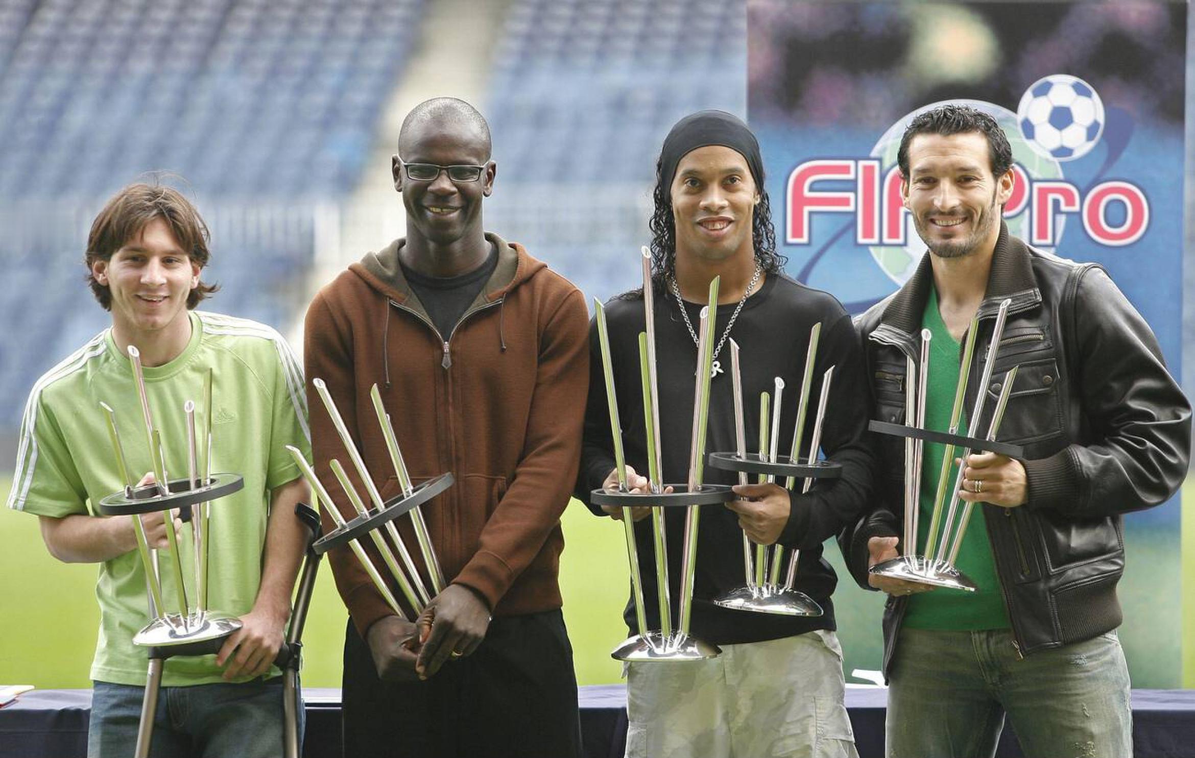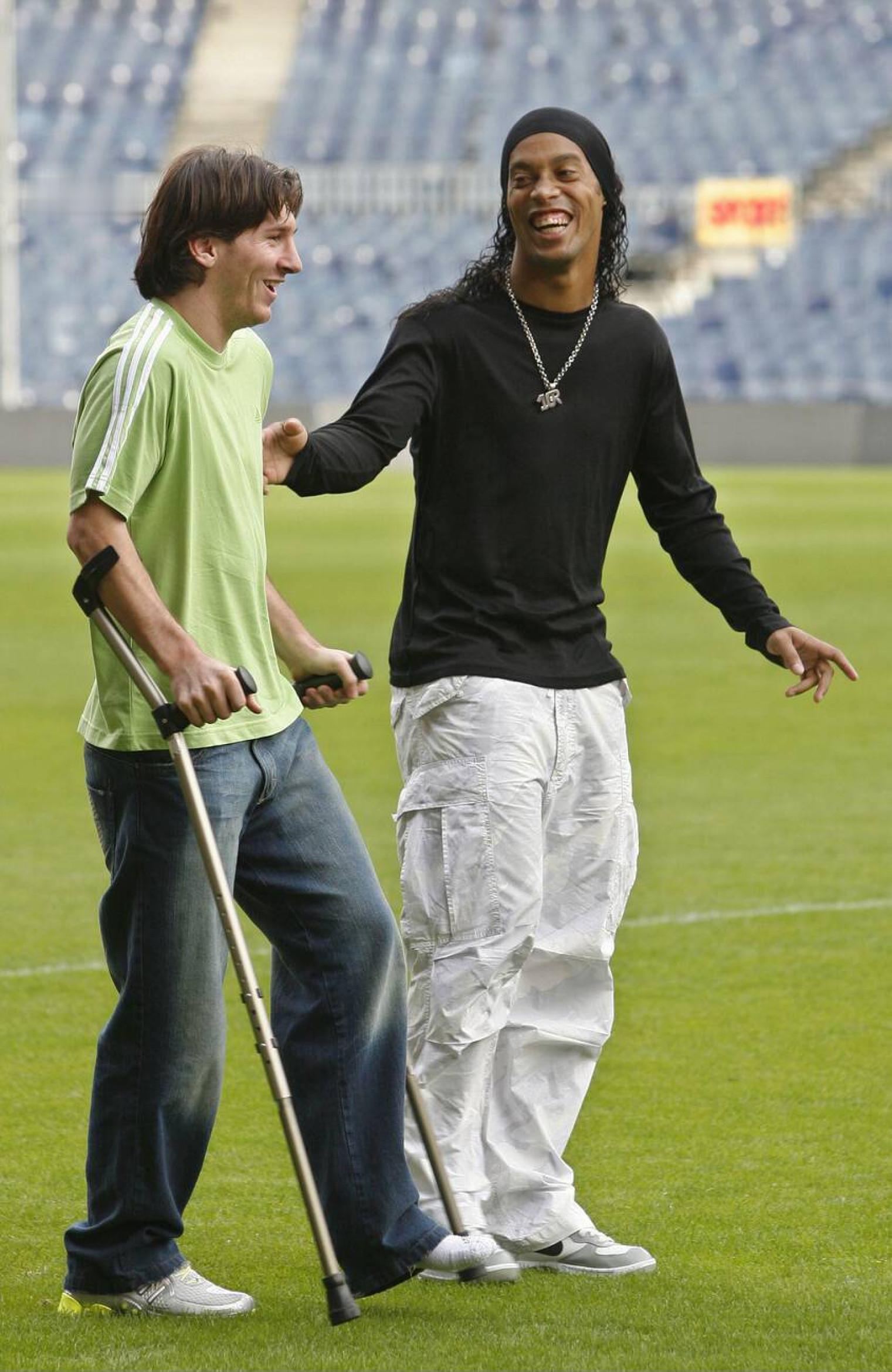 小罗INS晒照:2006年FIFPro世界最佳11人阵容奖图片中的梅西还受着伤拄