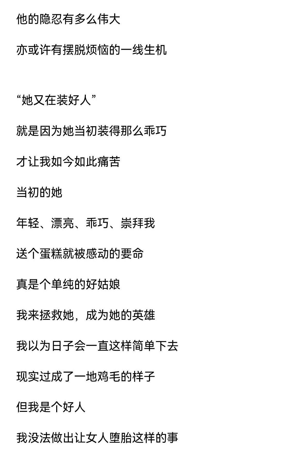 我跟你讲,一个男人,要是只能夸你“漂亮”,但死活说不出你“善良”、“能干”、“有本事”…… 你快跑。 真的,头也别回地跑。 因为“漂亮”这个词,解释权在他手上。今天他觉得你漂亮,你就漂亮。明天他不想给了,你就没了。这是他的恩赐,懂吗?是他颁发给你的勋章。 但“善良”和“能干”不一样。 那是你自己的光。是你骨子里带的东西,是他夺不走、也给不了你的东西。 所以他怕啊。 他怕你有了自己的光,就不再需要他这盏时明时暗、还得看他心情的破灯了。 他不是不爱你,他是恨你。恨你居然可以不依赖他,就能活得那么好,那么完整。你越是闪闪发光,越是衬得他那件皇帝的新衣,像个笑话。 他亲手把你推进泥潭里,就是为了享受一次又一次把你捞起来的、扮演英雄的快感。 但姑娘,你自己会游泳啊。 忘了么?