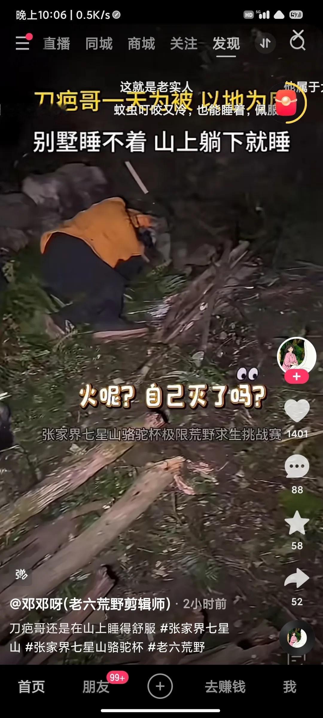能被大家喜欢一定有过人之处,刀疤哥说睡就睡,一堆衣服,也不说拿出来盖着。啥也没有,垫几层芭蕉叶就睡了,还很香。 为野外而生的。一个儿子。感谢当年的那个女人,在他还是个穷鬼的时候,给他生个儿子陪伴他。要是只有他自己,他或许不愿意去工地。这么恶劣环境,他都能活。何况山下的生活?有口吃的就能活。