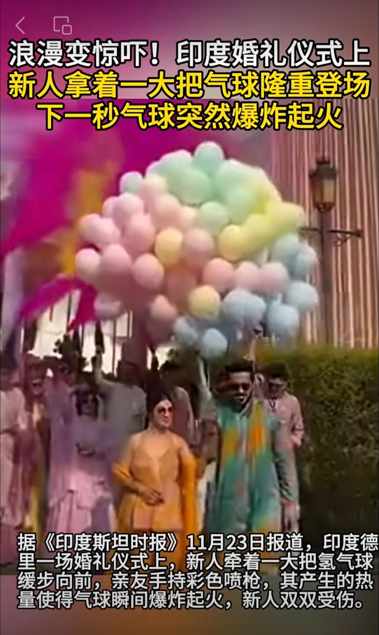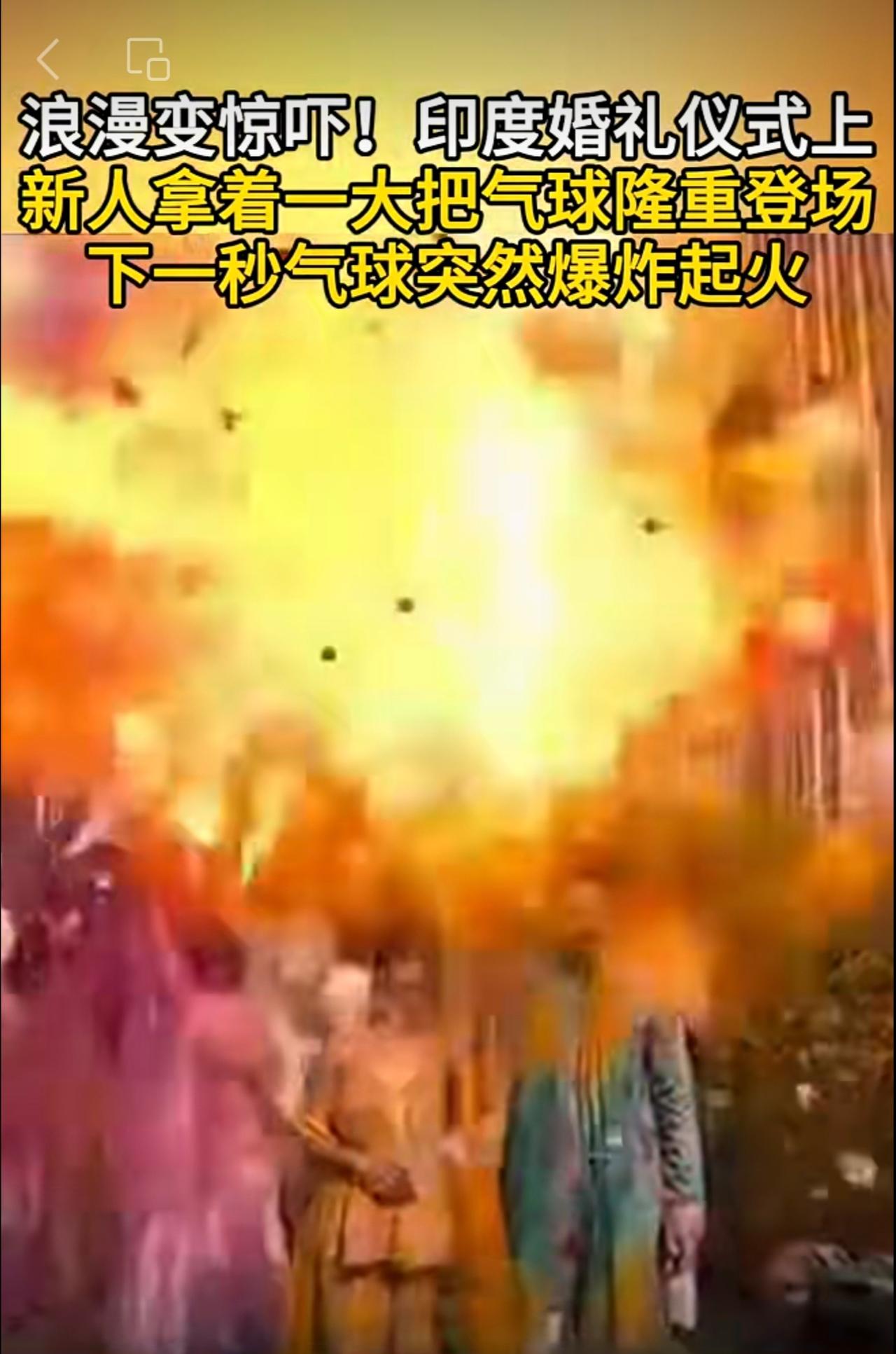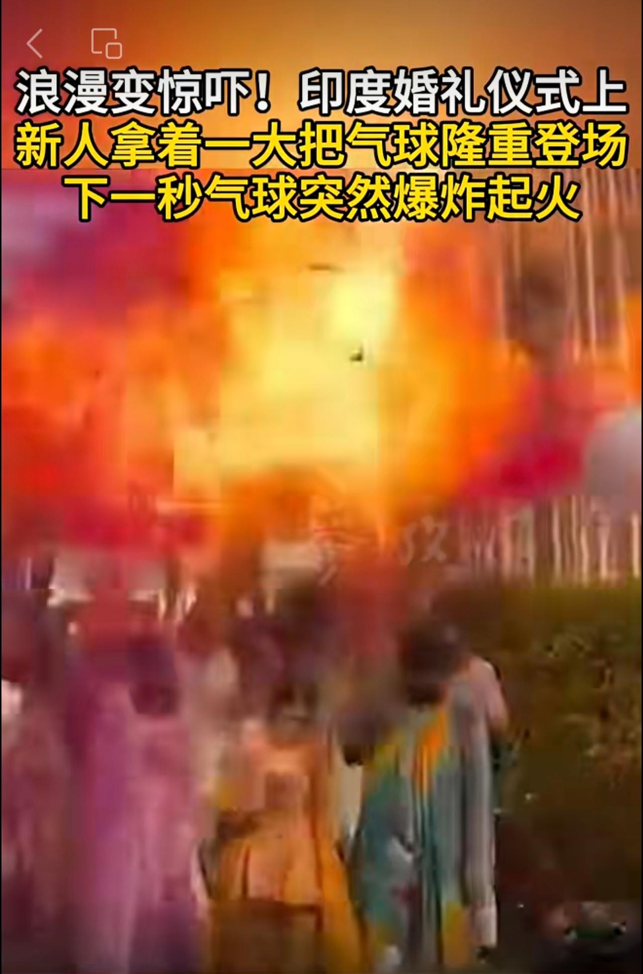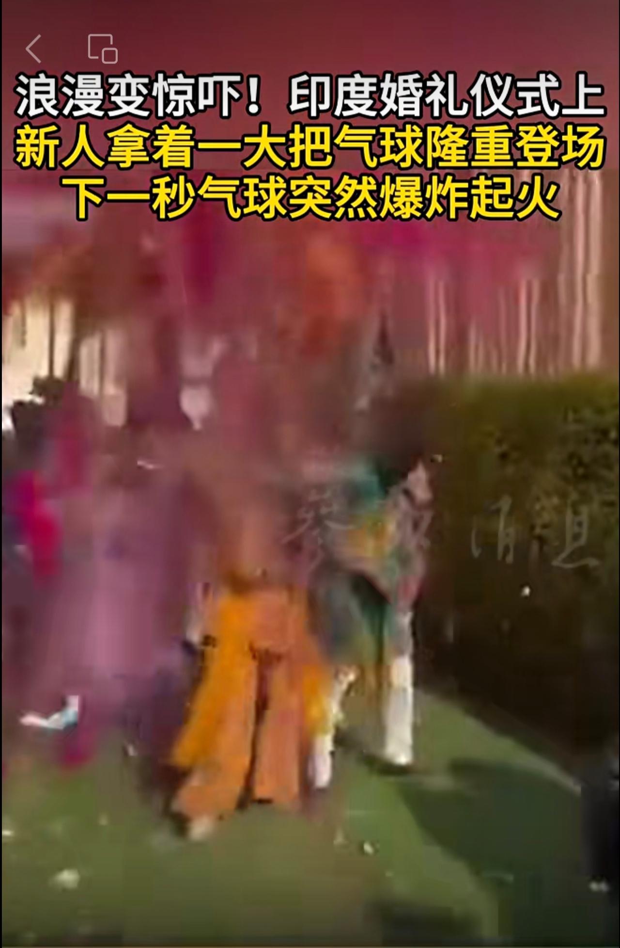 浪漫到爆炸?印度婚礼仪式上 新人拿着一大把气球隆重登场 下一秒气球突然爆炸起火