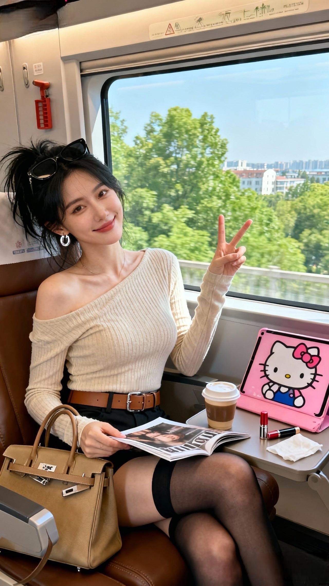 谁懂啊!高铁出行穿搭被我玩明白了!今天这身“又纯又欲通勤挂”直接把车厢变成我的秀场💅 这件米白斜肩针织衫真的杀疯了——露肩刚好勾出肩颈线,软乎乎的针织裹着身子,舒服得想在座椅上蜷成猫!配黑短裙+黑丝,甜辣感直接焊在身上,腰带一勒,腰细得像偷了蚂蚁的腰👀 最心机的是头顶墨镜+大圈耳环,随手一搭就是“姐很会穿但姐没使劲”的松弛感~旁边Hello Kitty平板壳一摆,甜妹属性又偷偷露出来,主打一个反差萌! 总结:这一身=舒适能瘫+美貌能打,坐高铁都能被邻座要链接的程度✨灰色长裙子穿搭 挤地铁穿搭 灰色露肩上衣 灰色长裙子穿搭 挤地铁穿搭 高铁穿搭 鹅黄开衫穿搭 高铁出行穿搭 美女人像群 高雅气质美女 人到中年,怎么改掉爱看美女的臭毛病
