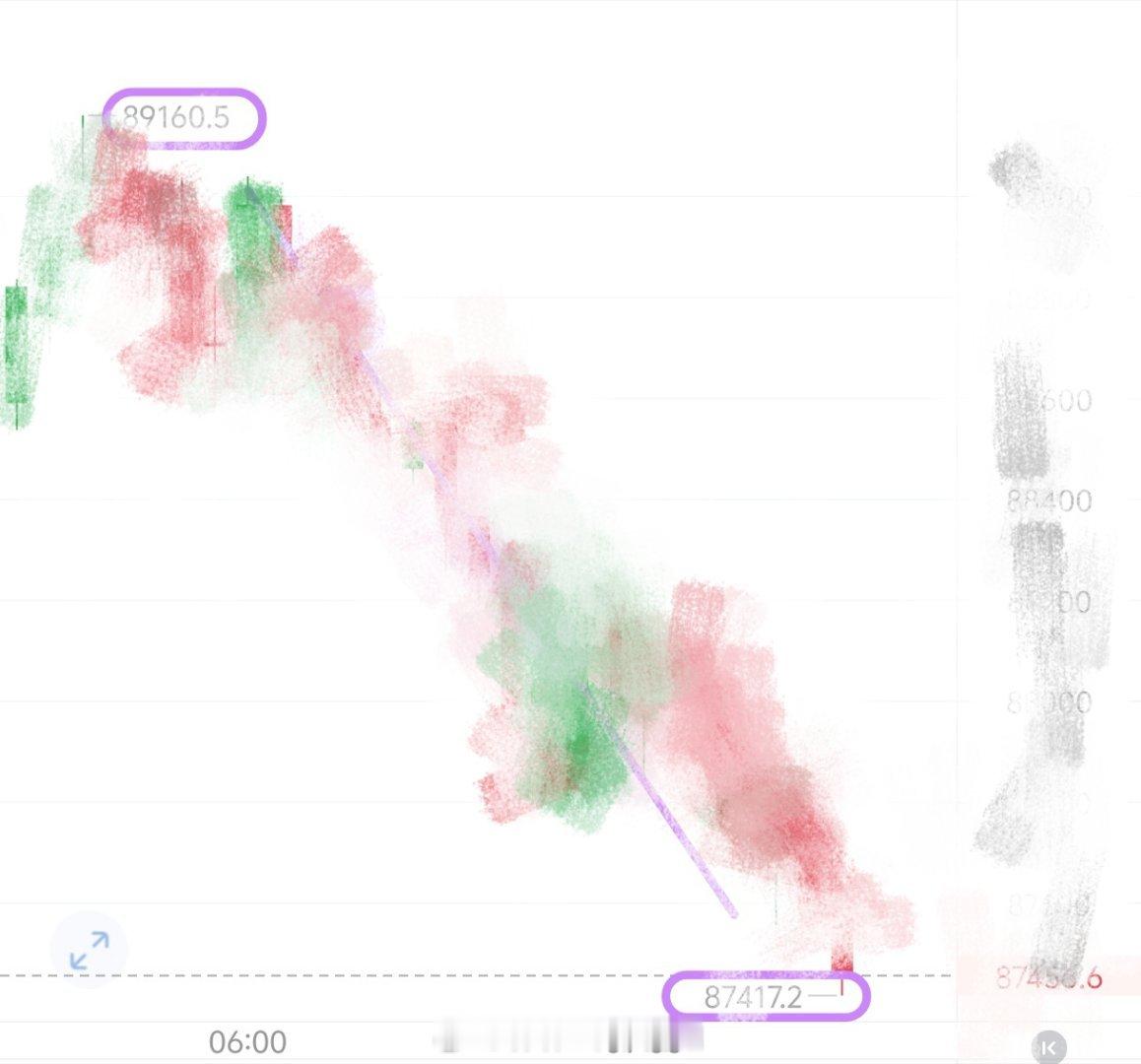 11.25早间比特凌晨这波急拉更具脉冲式冲高特征——从低位快速窜升至88500关