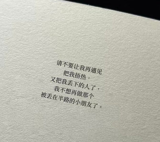 请不要让我再遇见那些先让我感到温暖,最终又将我抛弃的人。我不想再做那个被留在半路的小朋友了。