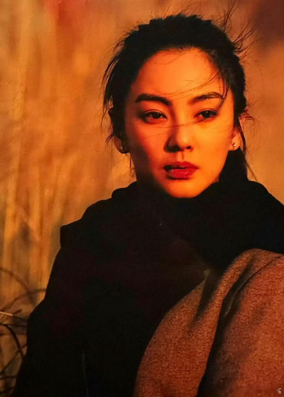 胶片镜头下,她碎发掠眼时展露的“蓄光豹瞳”成为标志性符号——黑白色调中眼神如夜色