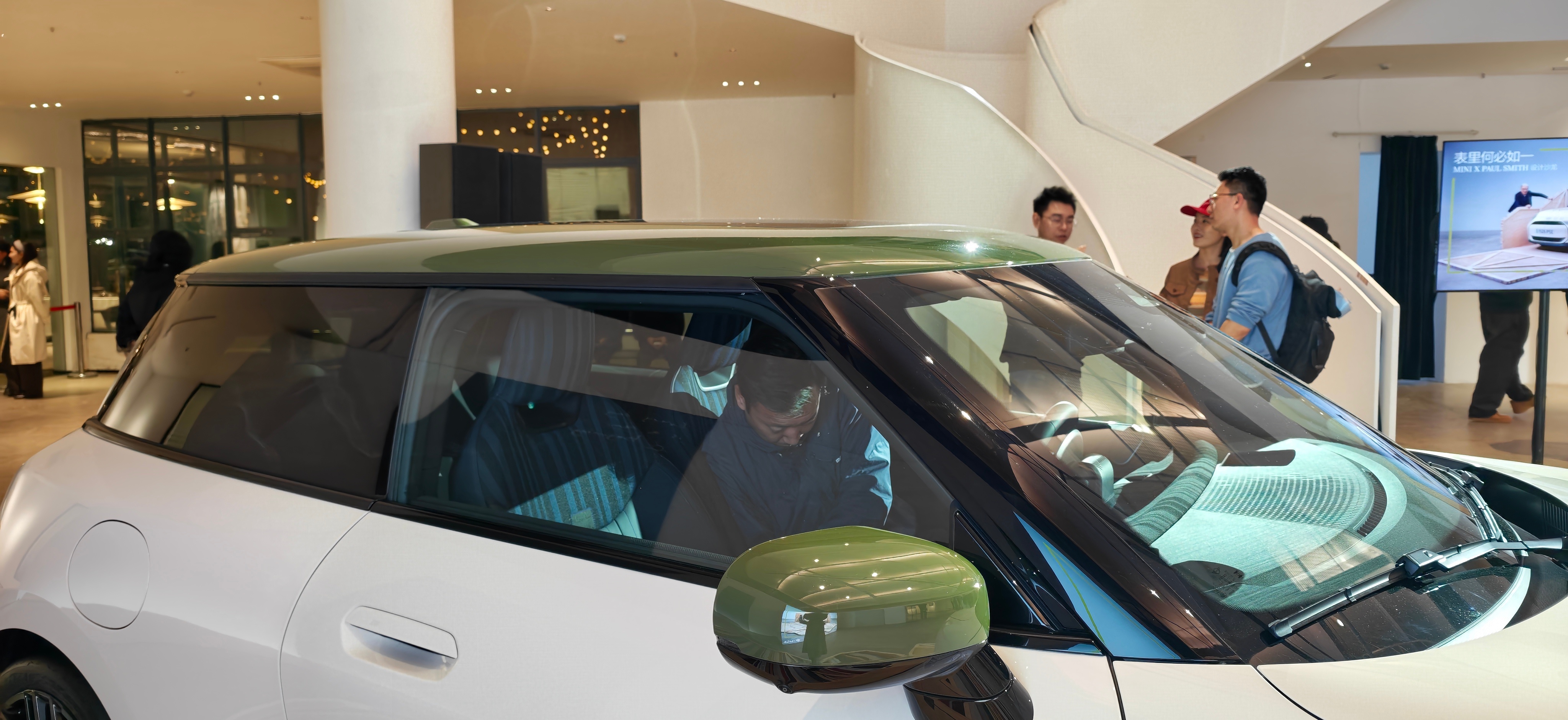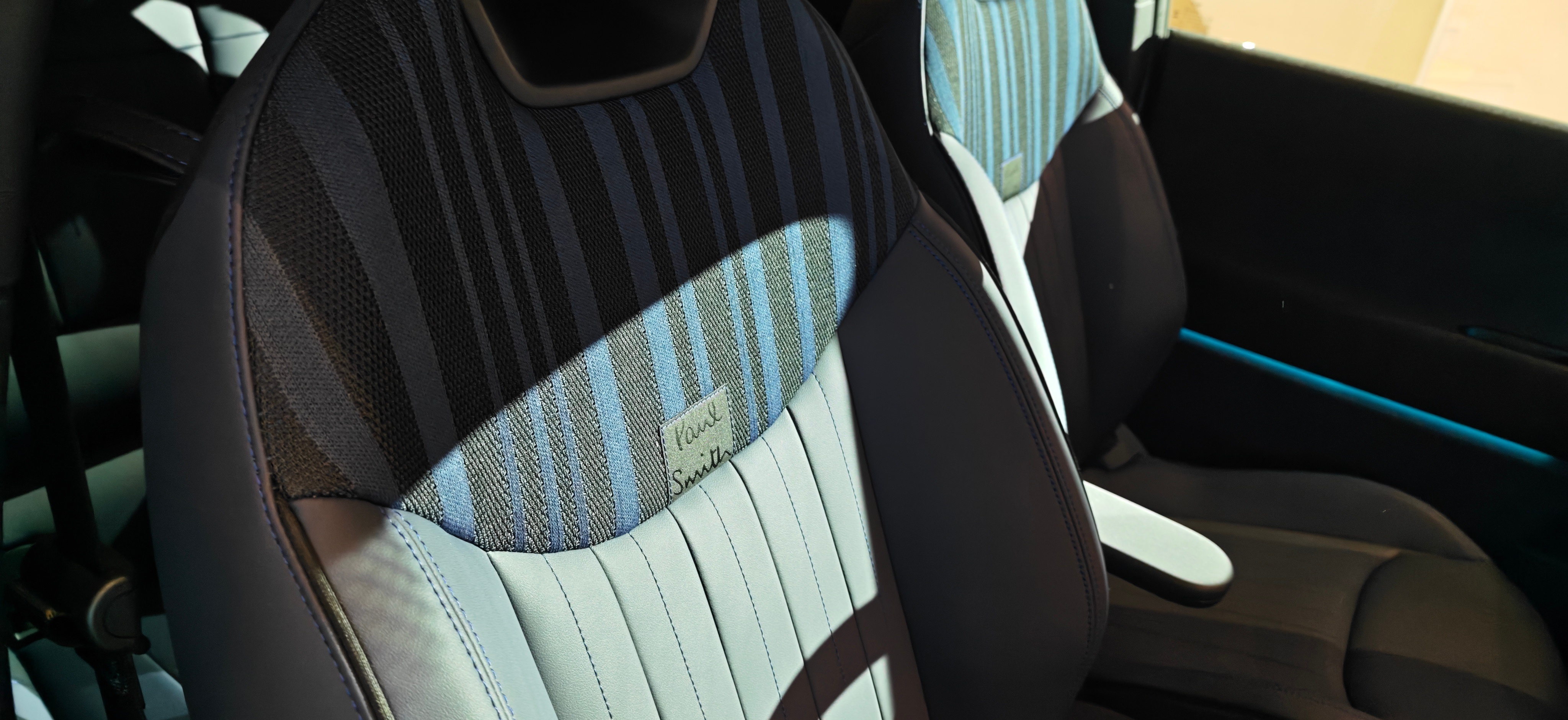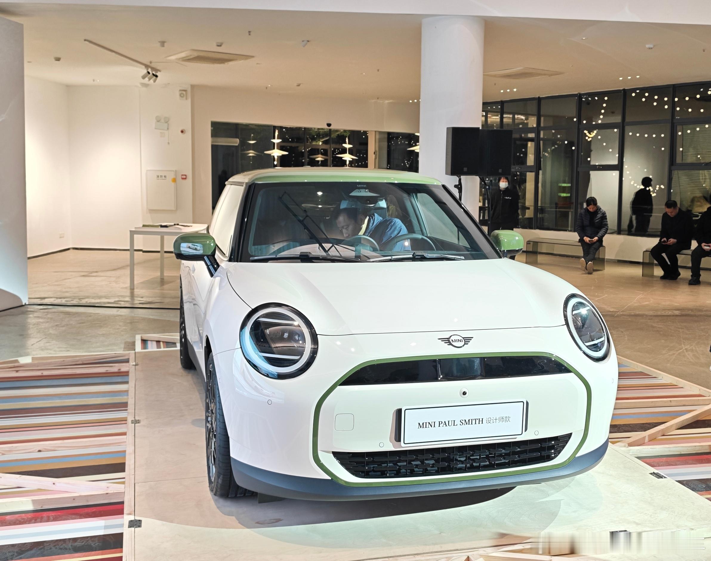 要说联名设计这块,MINI与Paul Smith属于经典组合了,MINI PAUL SMITH设计师款中国首秀,这颜值又要沦陷多少个女生。新增的羊皮纸白车色,搭配诺丁汉绿的外后视镜壳、进气格栅和车顶,清新又复古。都是设计师联名了,细节上,车尾、轮辋中心盖以及座椅靠背上,都有Paul Smith手写签名。我觉得最有感觉的是迎宾踏板上的这句座右铭“Every day is a new beginning”。