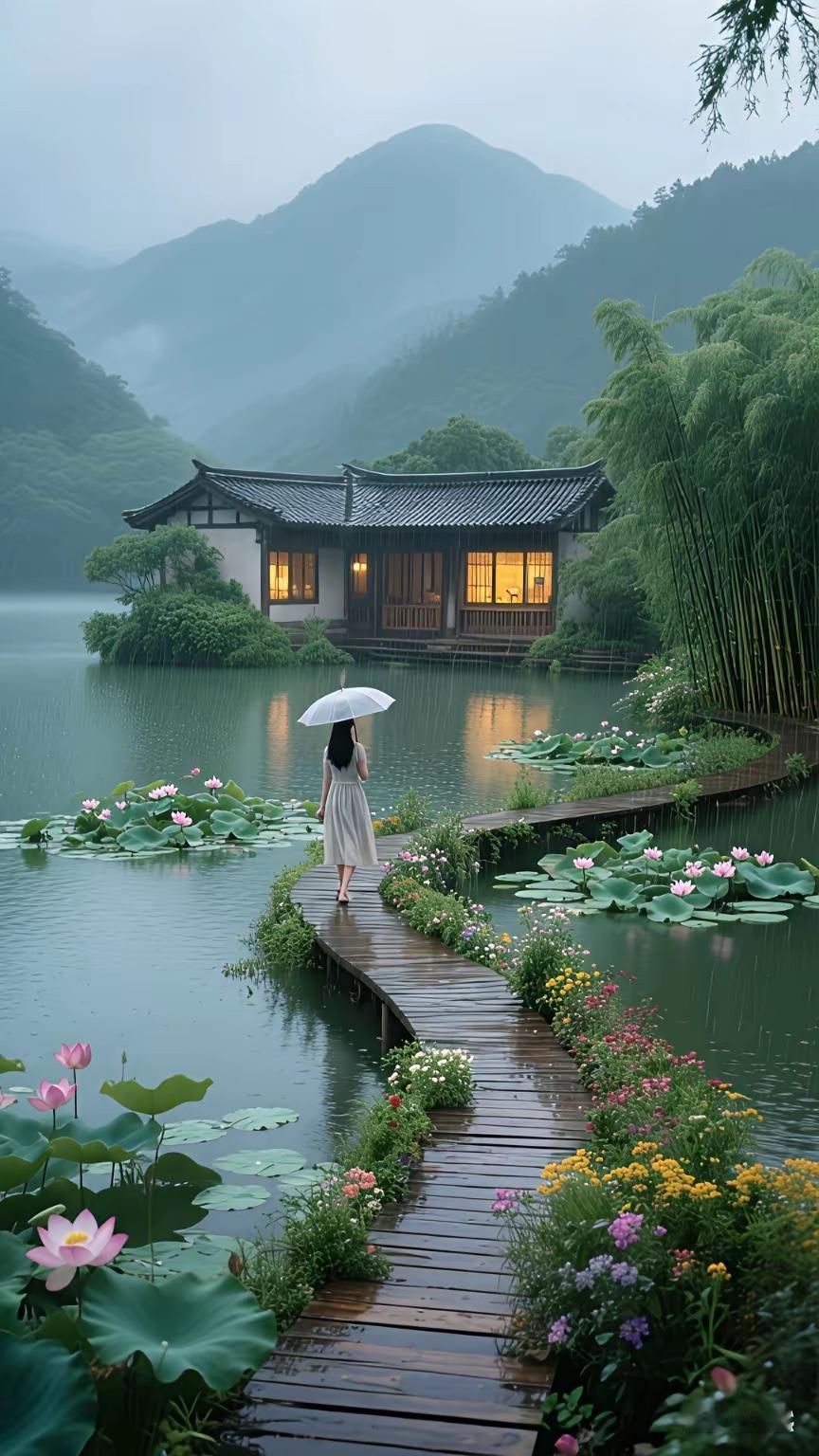华灯映水, 秀女登楼。 横批:《华灯与秀女》