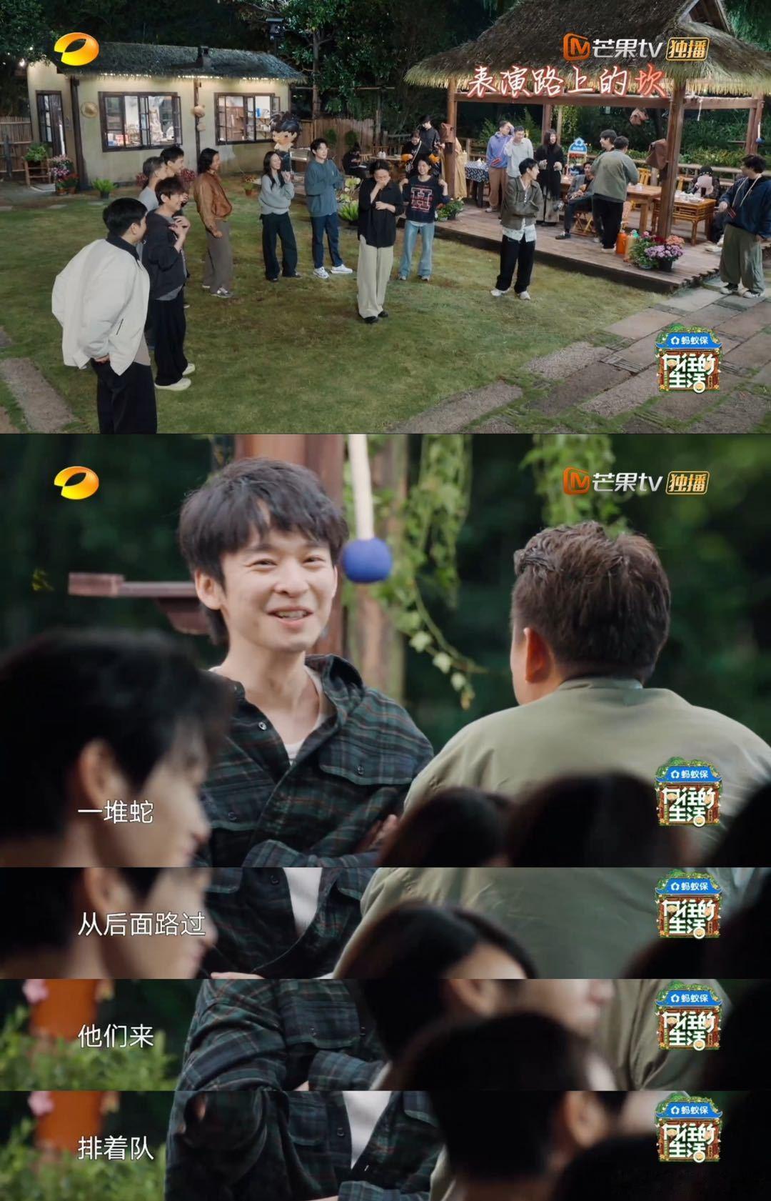 黄磊和董子健带领大家的蛇形走位挑战简直太可爱了!晚饭后的娱乐让大家笑翻,大家都拿
