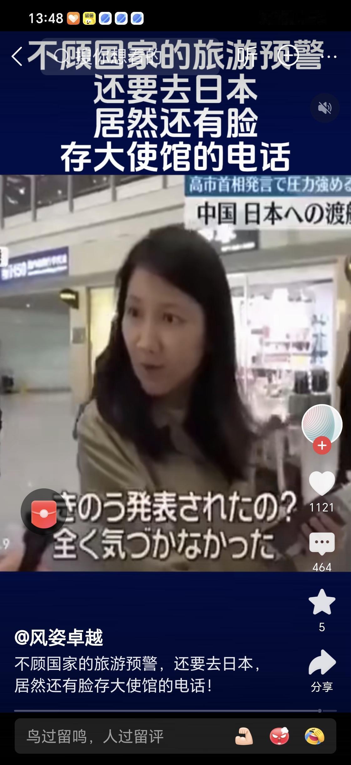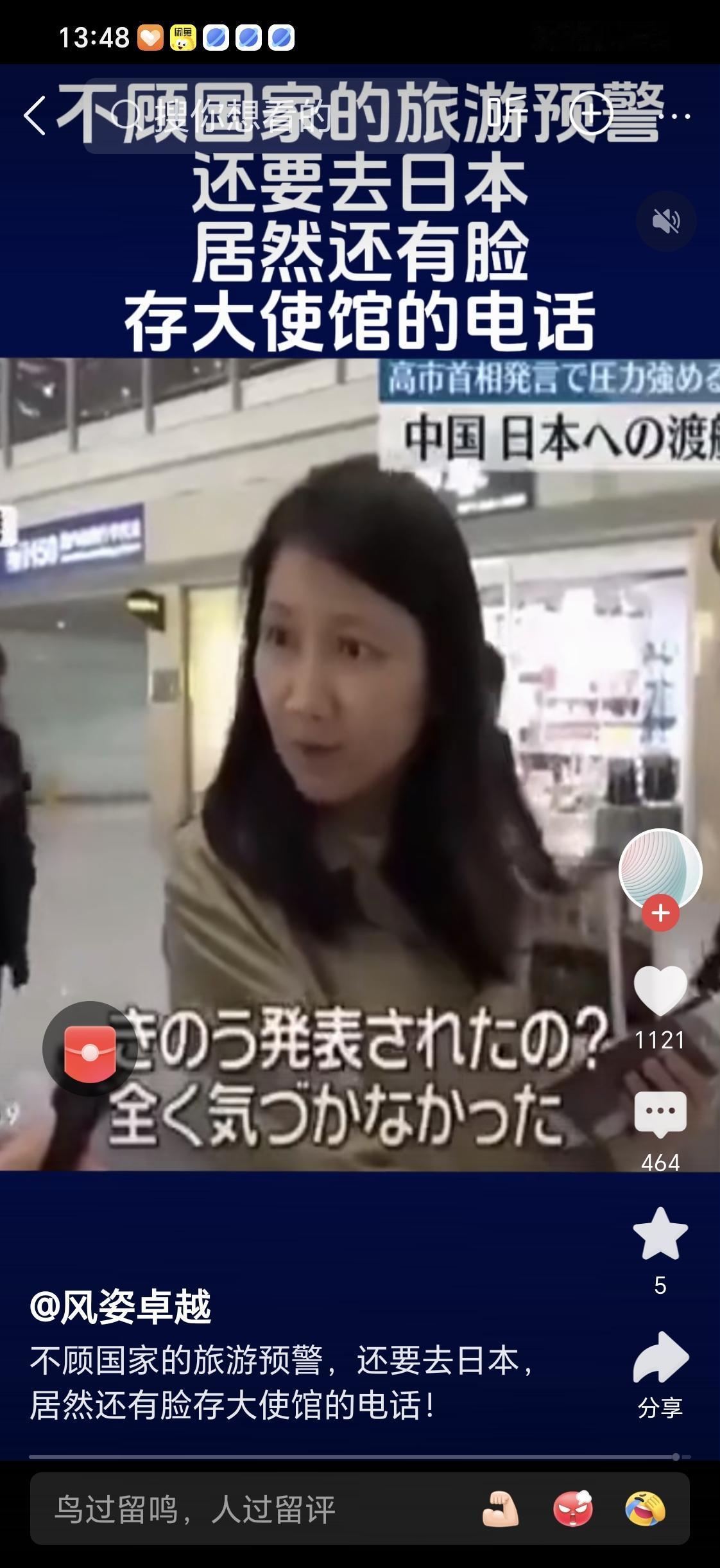 不顾国家三令五申的预警提示,要求大家在近期不要到日本旅游,而这个女同志不顾及国家提示,在接受媒体采访时说:“我手机里存着中国驻日本大使馆的电话号码,有事会随时联系大使馆”。不得不说这位国内同胞的脸皮真厚,日本真的就有那么好吗?非得这非常时期去日本旅游?林子大了,什么鸟都有。(图片来自网络侵删)